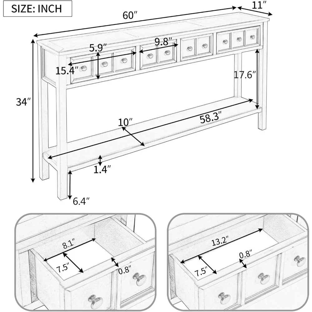• ❤ 【Overall Dimension】The desktop measures 60x 11 inches (L x W), making it the perfect space-saver for any room – including hallways. The Tabletop's capacity is 220LBS, The Bottom's weight capacity is 66LBSThe Drawer's weight capacity is 17LBS.