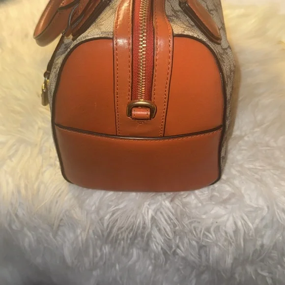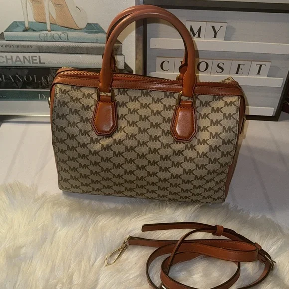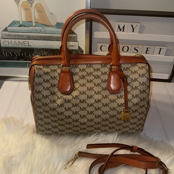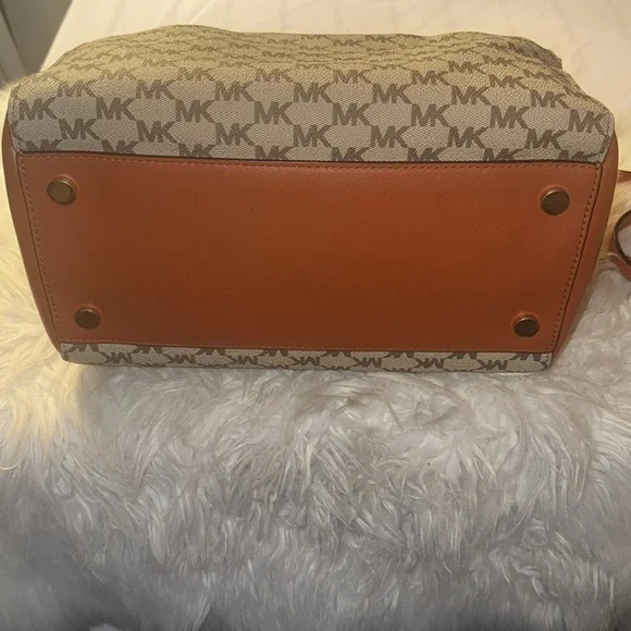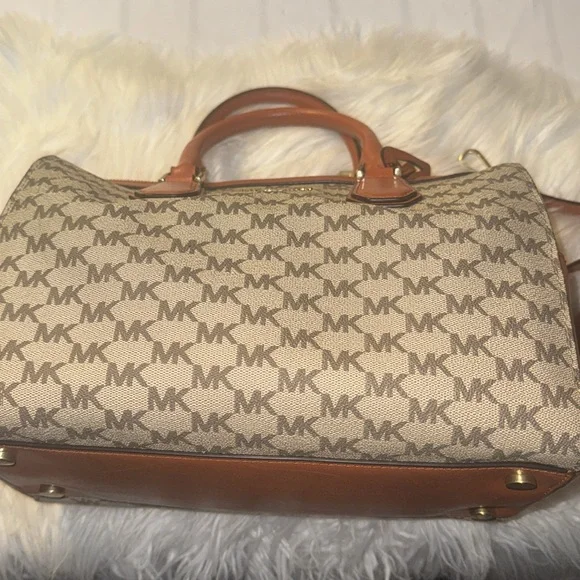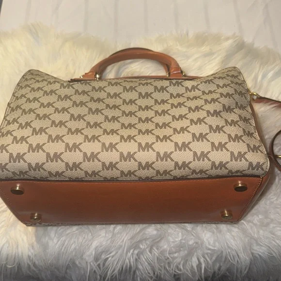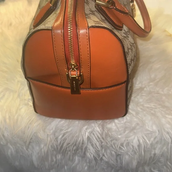 This Mercer bag from Michael Kors is simple in design and has an admirable build. Crafted from signature coated canvas and styled with leather trims, this bag comes with dual handles and a padlock. It has a nylon lined interior and side pockets. The bag is a perfect match for you.Exterior Material- Coated Canvas and LeatherInterior Material- NylonLength- 29 cmWidth- 16 cmHeight- 20 cmHardware- Gold ToneOrigin- Vietnam