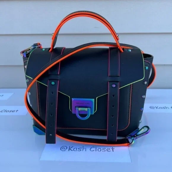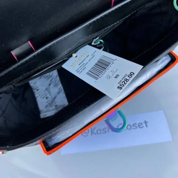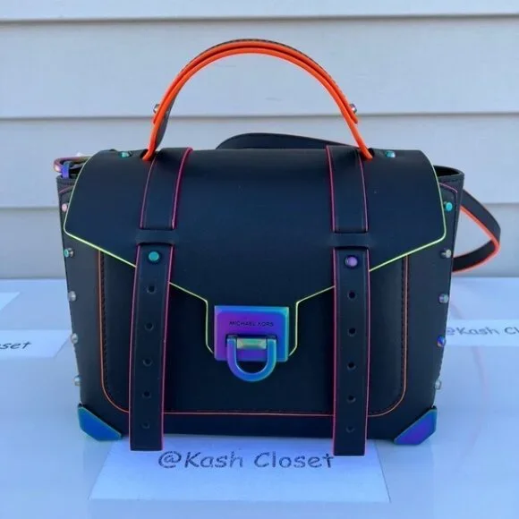 100% Authentic Michael Kors!!**Firm On Price **Details:• Satchel • Leather • 100% leather from tanneries meeting the highest standards of environmental performance • Neon hardware • Dimensions: 10"W X 7.25"H X 4"D • Adjustable strap: 19”-21” • Exterior details: front slip pocket • Interior details: back zip pocket, front slip pocket • Lining: 100% polyester • Flip-lock fastening • Dust bag not included • Imported• Color : Black• Size : Medium• MSRP : 528**Comes From Smoke & Pet Free Environment **#MK #Michael Kors #Wallet #Wristlet #Designerbag #Leather #Newcollection #Gift #KashCloset #Collection #Giftset #Shoes #Boots #Designershoes #Training shoes #Laceup #KateSpade #KS #Coach #Bag #Handbag #Purse #Satchel #Backpack #Duffle #Crossbody #Hobo #Messangerbag #Tote * Listing -KC271 *