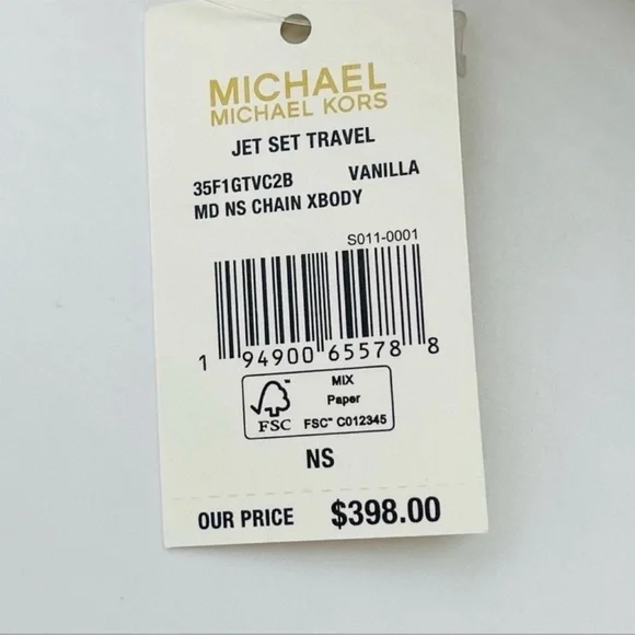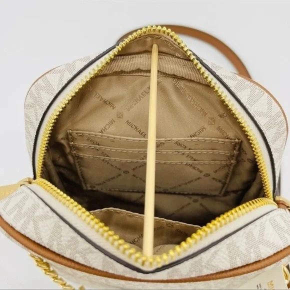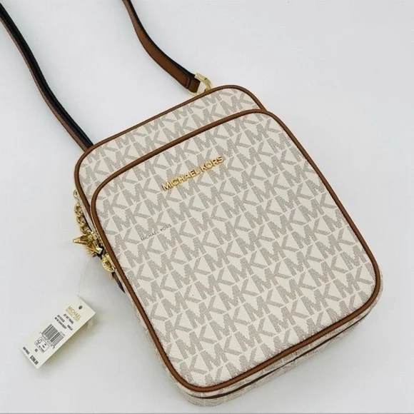 Brand New with TagMICHAEL KORSMichael Kors Jet Set Travel Medium NS Chain Xbody CrossbodyGuaranteed AuthenticPurse Features:Approximate Measurements: 6" L x 8" H x 2.5" DColor: VanillaGold tone HardwareMK Name Logo adorns FrontZip Pocket on Front Slip Pocket on BackLeather Crossbody strap attached with 18"- 24" DropInterior has MK Signature Fabric with 1 Slip Pocket and 3Card Slots