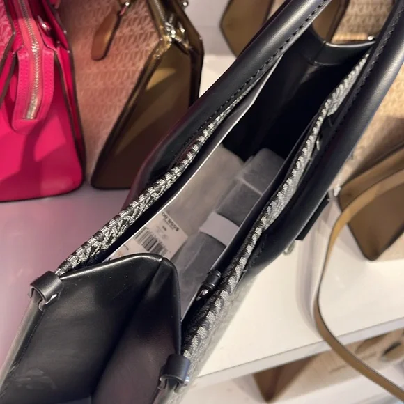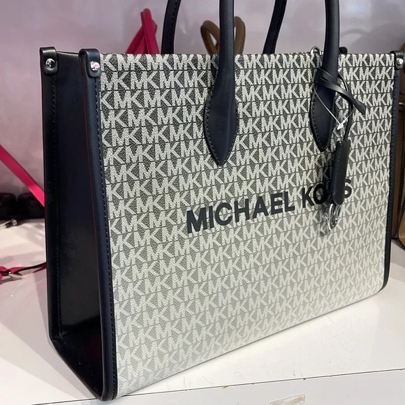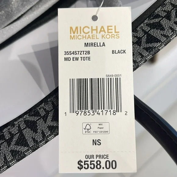 Michael Kors Mirella Medium Ombré Logo EW Tote Bag BlackNWT Authentic Crafted from durable coated canvas with an ombré finish, the Mirella tote is defined by our iconic brand lettering. With smooth accents and a roomy interior, this bag will be your new daytime go-to. Wear it with denim and a classic white shirt.• Tote bag• Logo-print canvas• 90% coated canvas/10% polyester• Trim 1: 60% polyurethane/20% cotton/20% polyester• Trim 2: 85% acrylic/15% polyester• Silver-tone hardware• 13.75”W X 10.75”H X 4.75”D• Handle drop: 4.5”• Adjustable strap: 15”-25”• Interior details: back zip pocket, front slip pocket• Lining: 100% polyester• Dust bag not included• Imported• Style # 35S4S7ZT2B