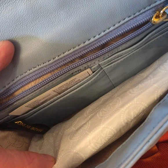 Condition:New with defectsSeller Notes:“was a sample and shows super minor signs of handling. see pics.”Bag Width:10 inShape:RectangleCharacter:BlueBag Height:6 inClosure:ClaspHandle/Strap Color:GoldOccasion:Party/CocktailSize:SmallHandle Style:Crossbody StrapHardware Color:GoldBag Depth:2 inExterior Material:LeatherVintage:NoBrand:Michael KorsDepartment:WomenLining Color:GoldExterior Color:BlueStyle:Clutch