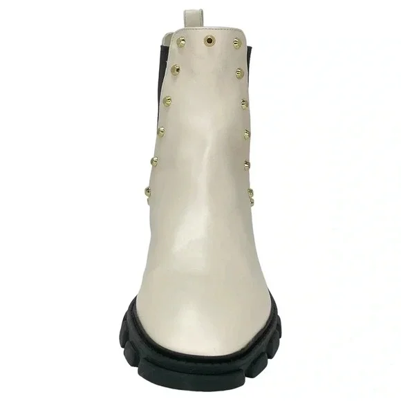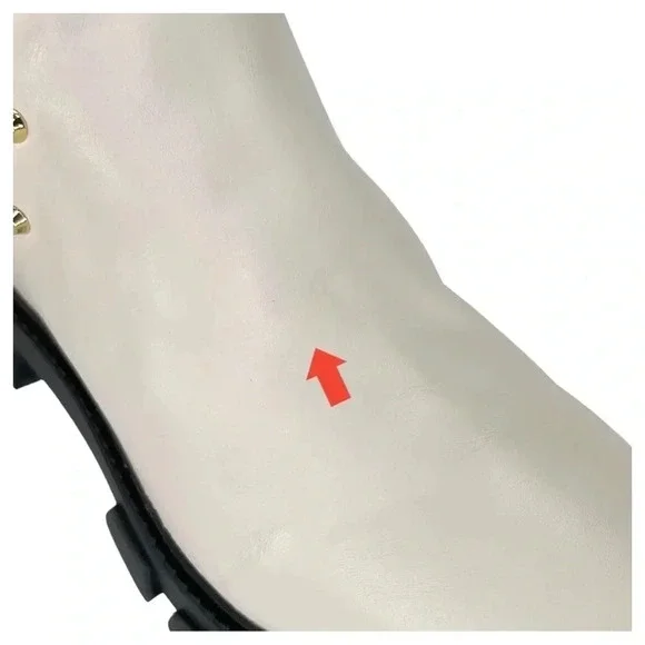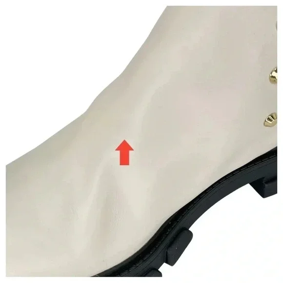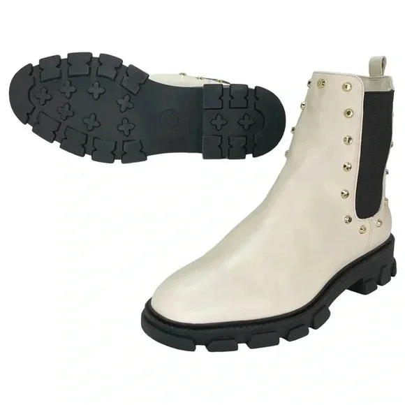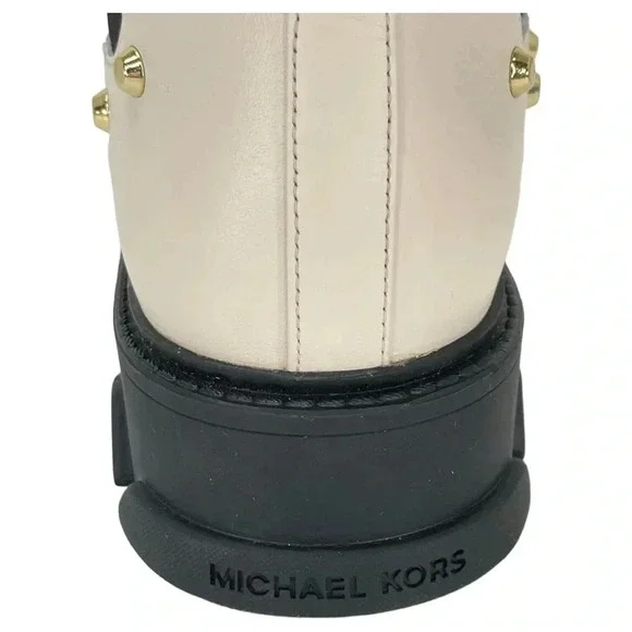 - Genuine Leather Upper- Fabric Lining- Rubber Lug Soles- Gold Tone Stud Accents- Gold Tone MK Logo on Heel Pull Tab- Medium Width- Side Gore Stretch for Easier On/Off- Cream/Bone Color- 1-1/2” Heel Height- 3/4” Toe Height- Never Worn, New Without BoxThese arrived from our supplier in a generic box.The only issue is a slight crease and discoloration on the vamp of the right shoe that is very hard to see unless you are specifically looking!These are still in very good condition!Please see photos for reference to their condition!