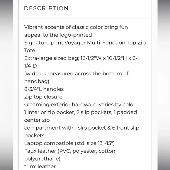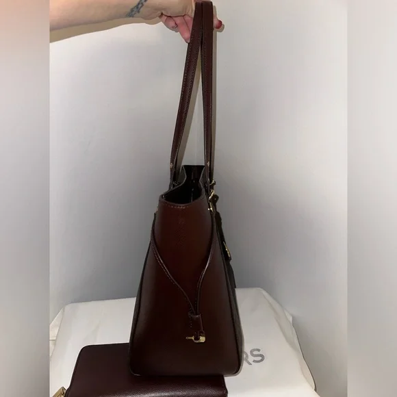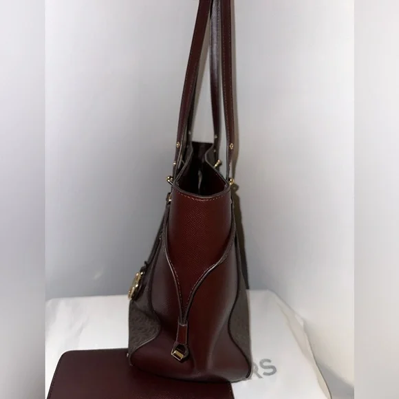 This purse is a head turner! The quality and rich color speaks for itself. No outside flaws at all. There is a couple marks on the satin lining. There is a pocket that is padded for either a smaller laptop, IPad or electronics. Purse is in excellent used condition! Wallet is not included. It is another listing in my closet! Bundle for a great deal!
