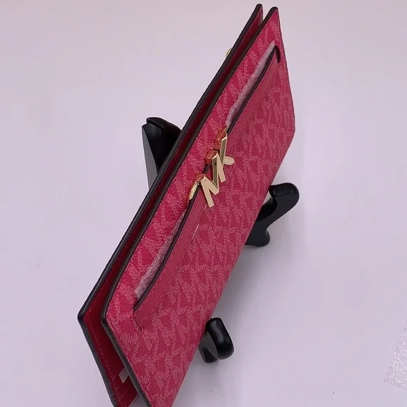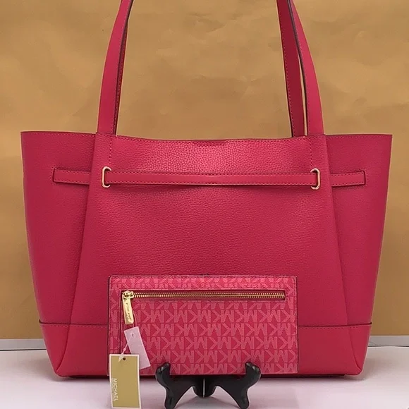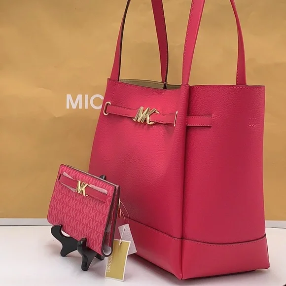MICHAEL KORSReed Large Logo Belted ShoulderTote BagElectric PinkMICHAEL KORSReed Large Logo Belted Shoulder Tote BagElectric PinkNew with the tag AuthenticDESIGNSoftly structured, the Pebble Leather Belted Reed tote strikes the perfect balance between practical and stylish. Designed to carry everything from a tablet to a change of clothes, it has a convenient interior slip pocket and zipped compartment for easy organization.DETAILSTote bagPeble LeatherGold-tone hardware16.5"W × 10.75"H X 7"'DHandle drop: 11.5"Interior details: back zip pocket, front slip pocketLining: 100% polyesterSnap fasteningMICHAEL KORS Reed LargeSnap Signature WalletMK LogoSnap Wallet1 Back Zip Pocket12 Card Slots2 Bill Money SlotsDimensions: 7.5"(L) × 4"(H) × 0.5"(D)