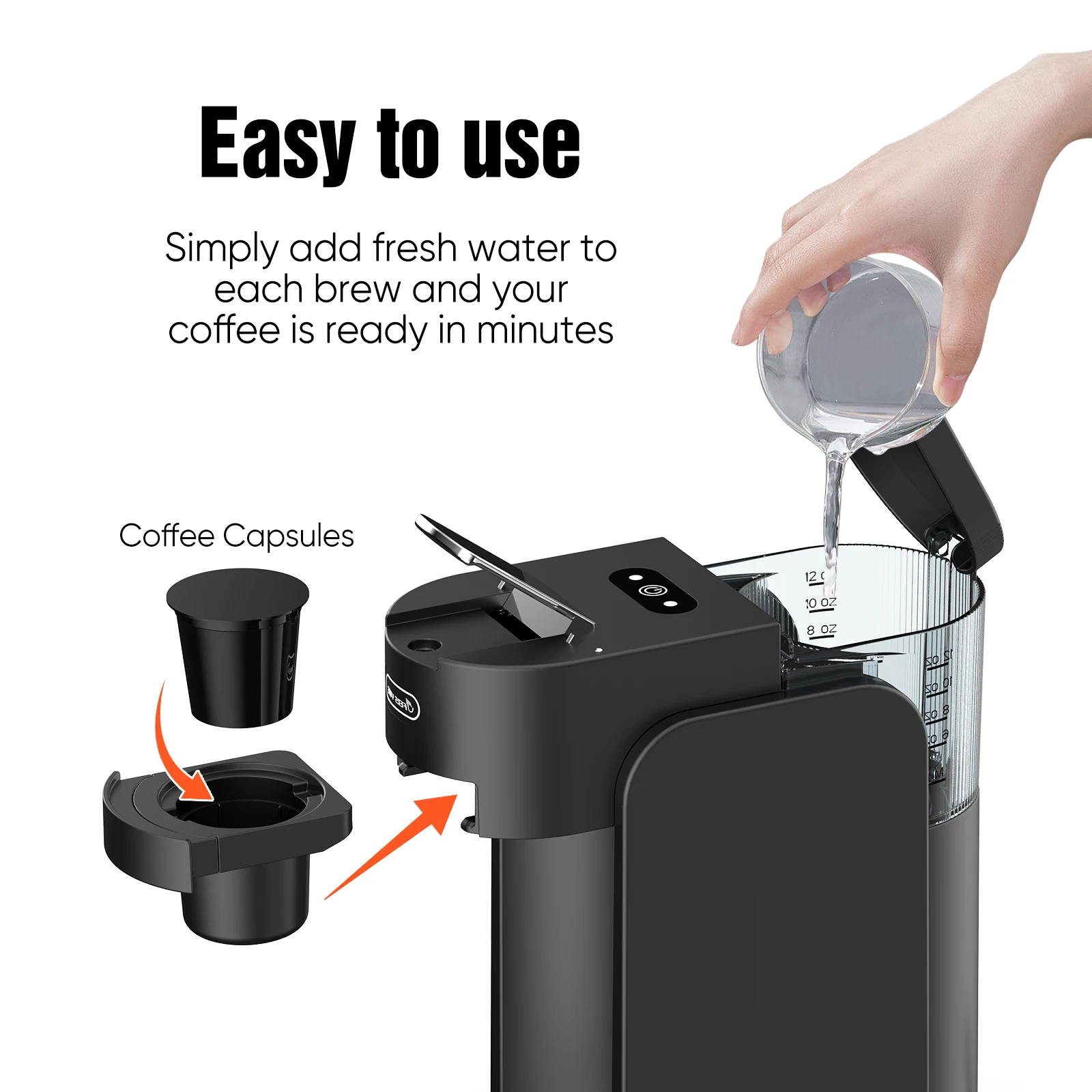 Suitable for k-cup capsules, coffee powder, and tea leaves