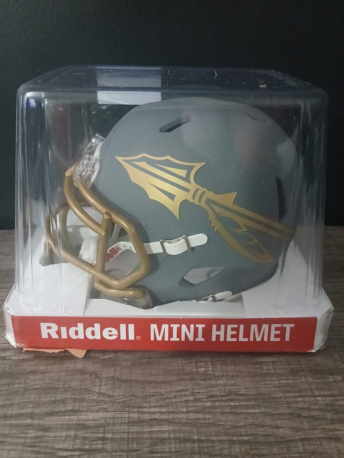 Riddell Florida State Seminoles Slate Signer By Dexter Jackson The "Slate Collection Mini Helmet" features a flat gray shell with gold or silver facemasks and decals. Beckett Authentication Certification Verification