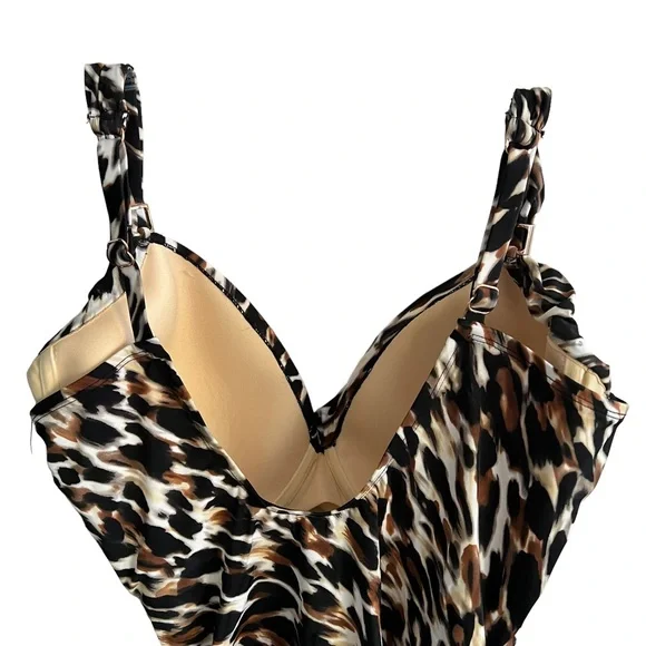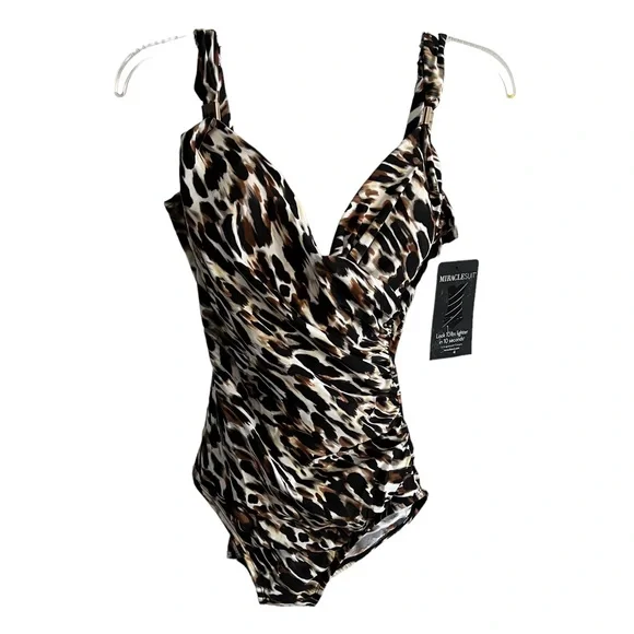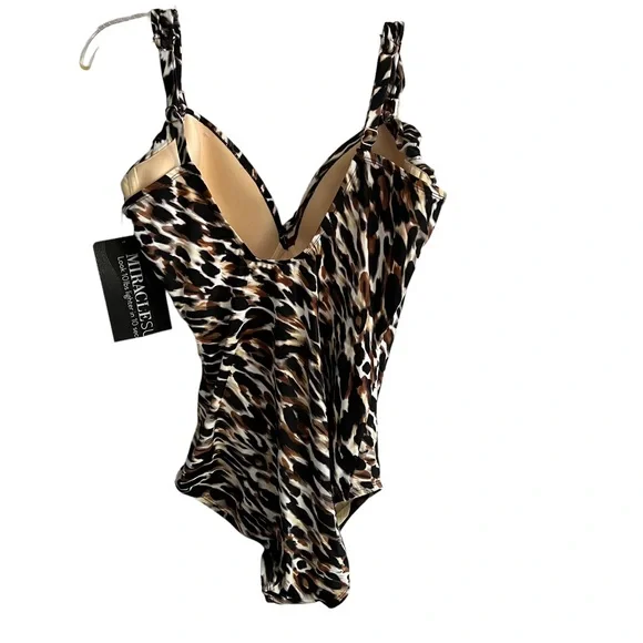 New with tags Miraclesuit Fur Realz Siren One Piece Swimsuit Color: Brown Multi Women’s Size 16Fur Realz Siren One Piece, a Tummy Control Swim marvel. Experience unparalleled support with underwire molded cup braLook 10 pounds lighter in 10 seconds!® wearing this tankini top featuring an underwire bra, dazzling hardware, drapey layers and Miratex® fabric.Full back coverage69% nylon, 31% spandex with 82% nylon, 18% spandex contrastHand wash, line dry