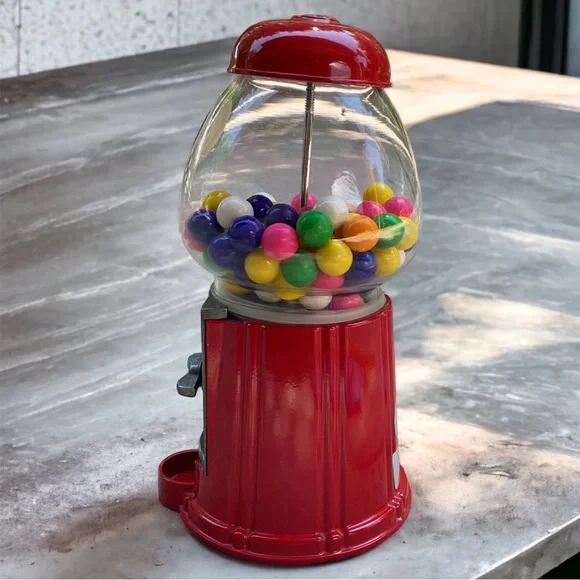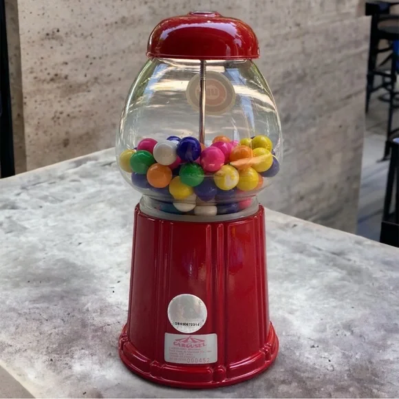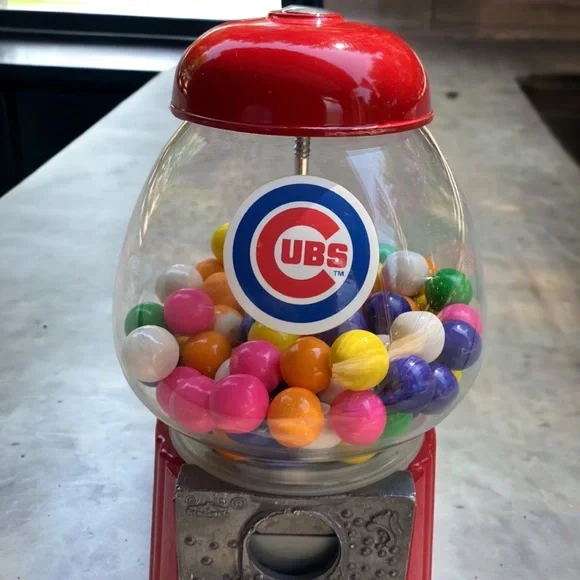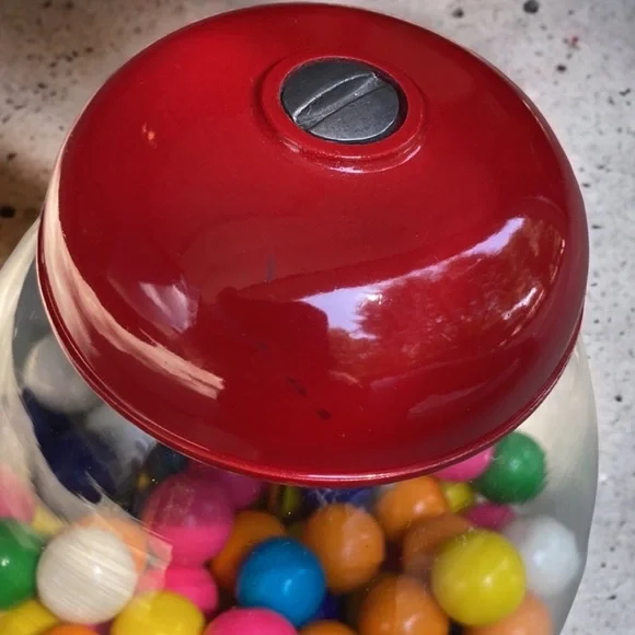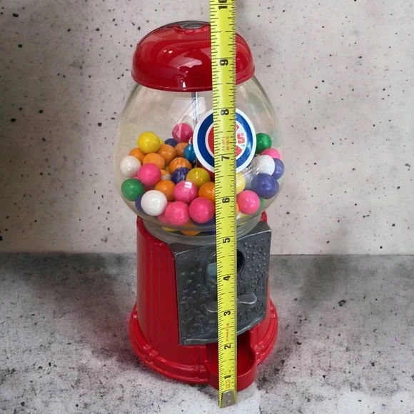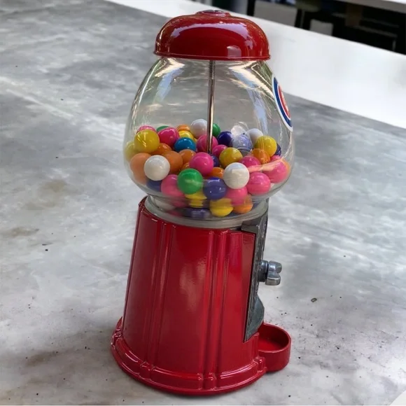 Constructed of sturdy cast metal and a glass globe. This machine accepts pennies, nickels, dimes, and quarters.I will be removing the existing gum balls for shipping. This item preowned and sold as pictured. Some mild signs of wear are visible due to storage & use including scratches. Please review all pictures before purchase. Please keep in mind that colors may vary based on computer monitor or phone settings.TOP CAB