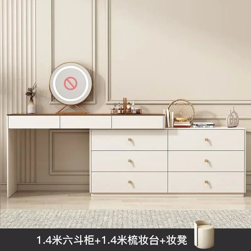 Modern Vanity Desk with LED Lighted Mirror, Luxury Corner Makeup Vanity Table 6 Drawers and Large Storage Dressing Table Shelves