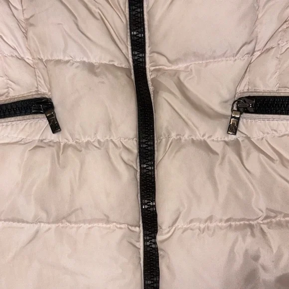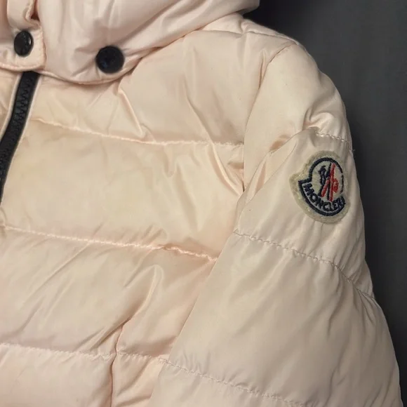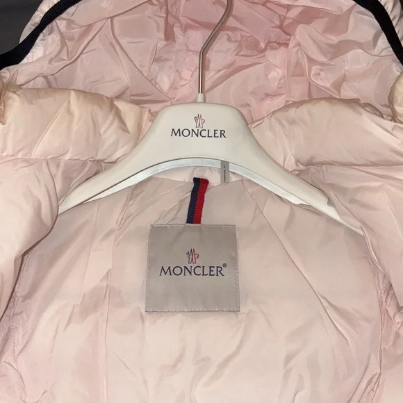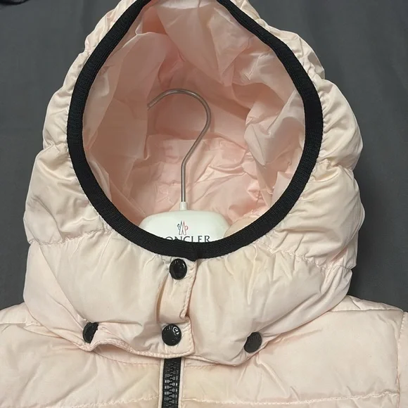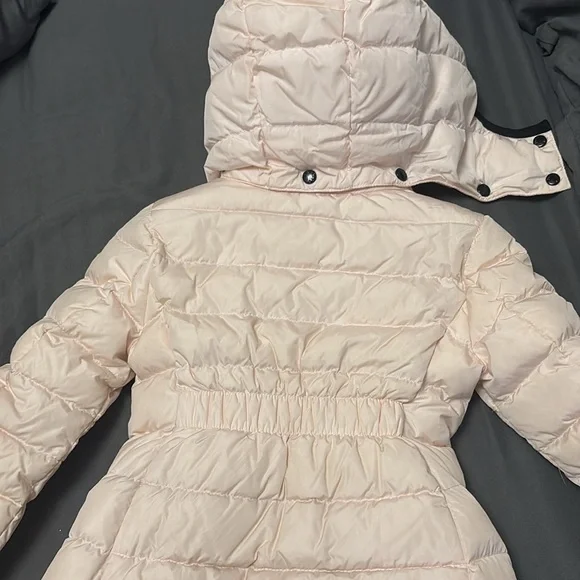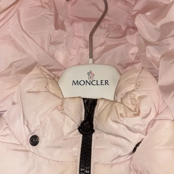 Size 4 girls Moncler , long coat. Excellent condition just needs a little clean or wipe down very easy to wash. Pictures are as is. There are no malfunctions or zippers work perfectly fine. There is also a detachable hood. Please follow instructions. Comes with original Moncler hanger. SERIOUS BUYERS ONLY!