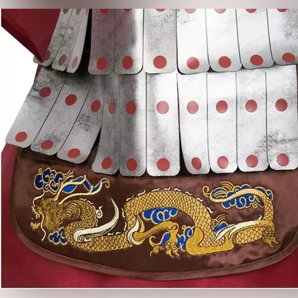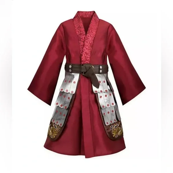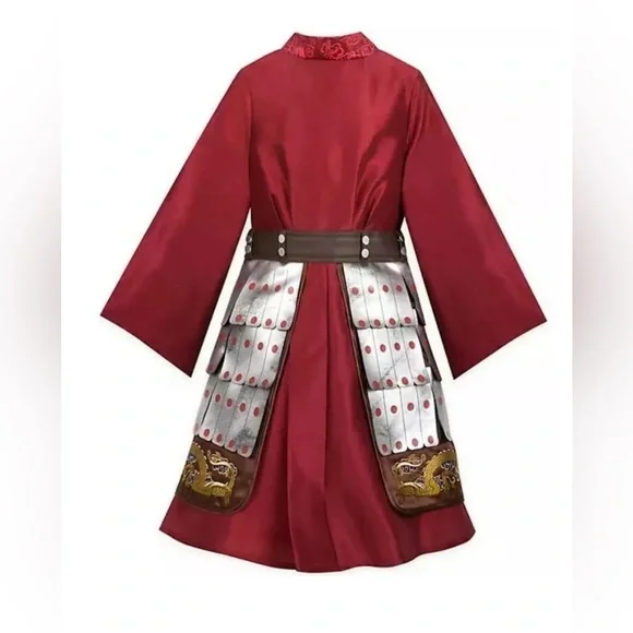 Bring honor to the role of one of China's greatest heroes in this Mulan Deluxe Kids Costume by Disguise. Inspired by the live action film, it features a jumpsuit with attached red tunic and grey pants. Complete the look with the removable faux leather belt that includes sublimated art armor on the peplum.Magic in the detailsTwo-piece Mulan costume includes jumpsuit with attached jacket and pants, and a belt with attached faux armor*Comfortable twill jumpsuit with red jacket and attached gray pantsRed jacket of jumpsuit features contrast trim to give the impression of a shirtSoft flowy pantsElastic waistbandSelf-stick fabric closure at backDetachable foam belt with armor peplumSublimated art armorSublimated dragon art on faux leather peplum hemThe belt has two self-stick fabric strips that attach to the jacket at the hips and two strips that secure the front togetherInspired by Disney's live action Mulan (2020)