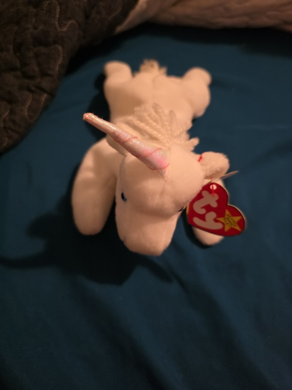 The product is a retired Ty Beanie Baby plush toy called Mystic The Unicorn. This collectible item features the signature brand of Ty and belongs to the original Beanie Babies line. It is a sought-after piece for toy collectors and fans of the brand. Each Beanie Baby comes with its own unique style, tag, and personality, making it a special addition to any collection.