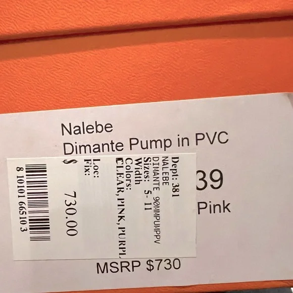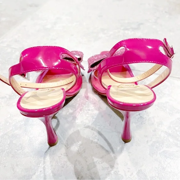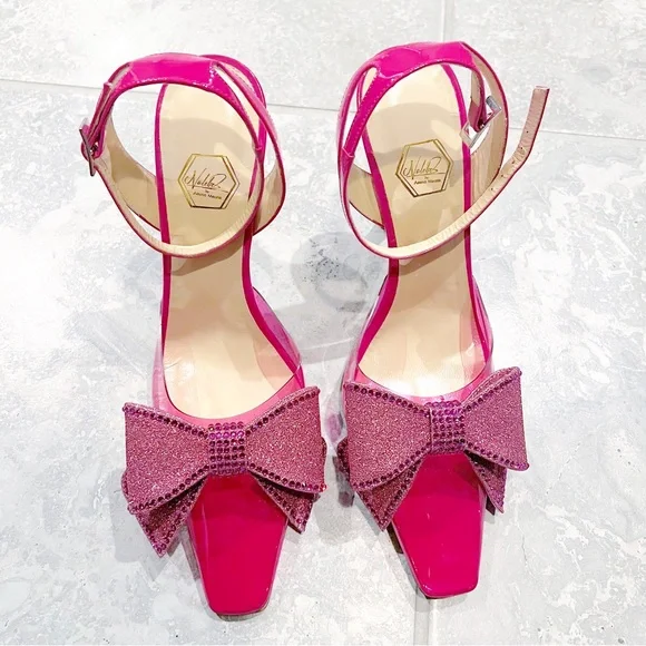 Nabele by Amina Means Pink, Size 39 New in BoxDetails:Glitter finish statement bowCrystal embellishmentsPadded leather footbedBuckle ankle strapSquare toeLeather soleFabric: PVCMade in ItalyFits small, order the next size upSnip-toeBuckled ankle strapCrystal-detailed bow on upper3.54" covered heelFabric/polyvinyl chloride (PVC) upper, leather lining and soleMade in Italy