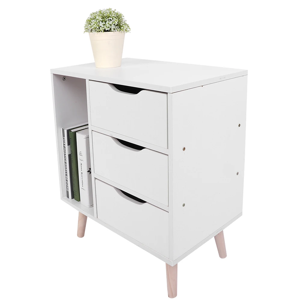 Free Standing Bedroom Bedside Table Night Stand Cabinet with Drawers Foot Storage Organizer