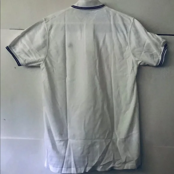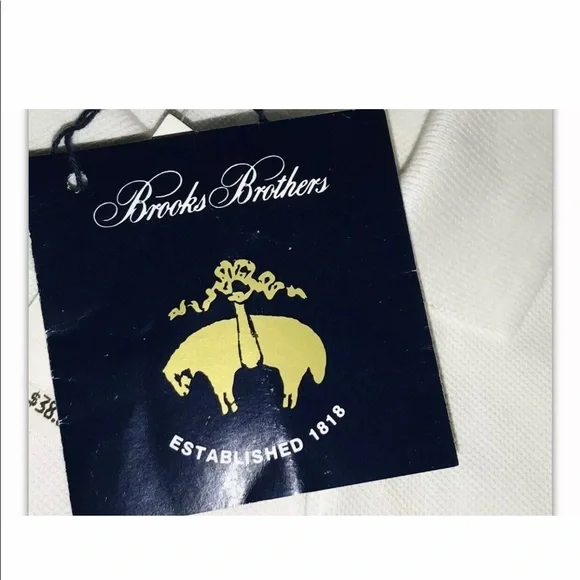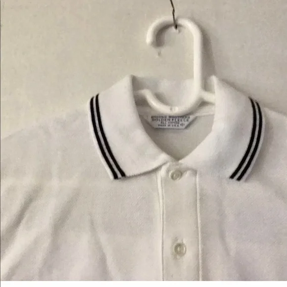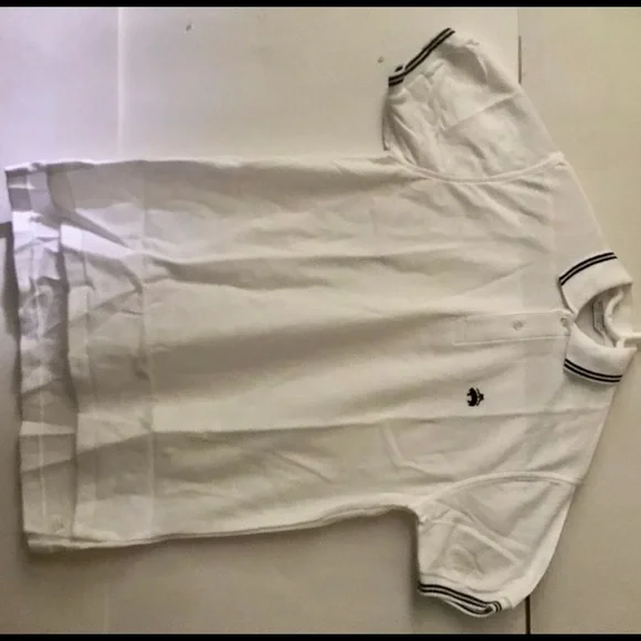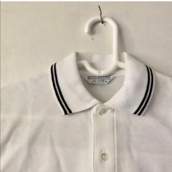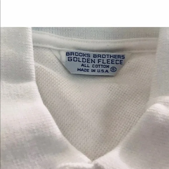 New Brooks Brothers Golden Fleece Polo ShirtSize Small 100% Cotton Signature Golden Fleece PoloGolden Fleece embroidered on chest In blue Two blue lines around collar and ends of short sleeves 18” neck Two button placket Designed for comfort and durability Made from 100% American grown cotton Finished with signature performance treatment to enhance shape retention and resistance to shrinking, fading, and piling Designed for optimal comfort Machine wash Made in USAAlways been in our very clean home since purchased new at Brooks Brother