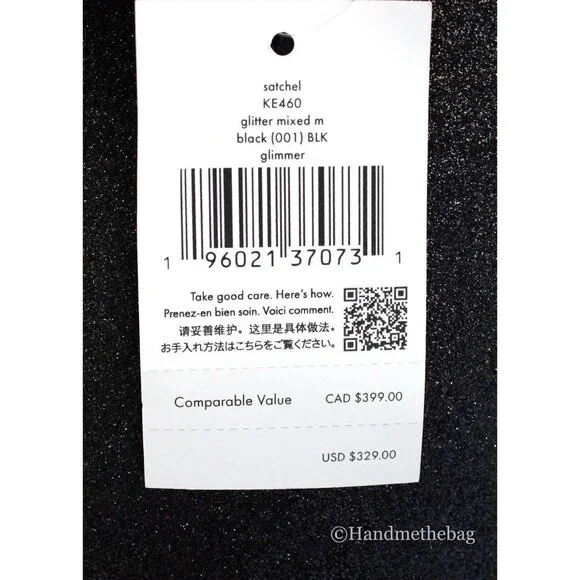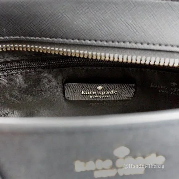 Kate Spade Glimmer Small Black Satchel Crossbody Handbag PurseFeatures: Adjustable/Detachable Crossbody StrapZip ClosureJacquard LiningInner Slip PocketsMaterial: Glitter Fabric and Saffiano PVCMSRP $329.00Measures:11.02" L x 8" H x 3.5" DSKU 70731All offers are welcome! Professional seller, (Please look at our pictures as that is exactly what you are purchasing)Once payment has been received, the item will be shipped out within one business day or earlier. Once the item is shipped, tracking information will automatically be uploaded. All purchases after 12 pm (EST) will be shipped the next business day.Tags: Designer bag, Classy bag, Luxury Bag, Classic, Feminine, Cute bag, Party bag, Night out, Gift, Crossbody, Satchel, Handbag, Purse,retroglam, modernroyalty, royalty, regal, Skirtsuit, careerchic, formal, businessformal, businessprofessional