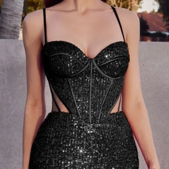 The glamorous dress made in the silhouette of the sheath will emphasize your curves, while a daring cut on the skirt will allow you to move comfortably and sparkling sequins covering the entire perimeter of the dress create an eye-catching image while functional lacing on the back will ensure a reliable fixation of the dress.Length: LongColour: BlackNeckline: Off shoulderSilhouette: SheathSleeve: Sleeveless, strapsBack: Lace upSkirt: Leg slitEmbellishments: SequinsOccasion: Romantic date/evening/dinner, wedding/bridesmaid, graduation, fashion show, visiting theater/museum/restaurant, banquet, photo shoot, concert, ball gownTAGS: OFF SHOULDER SEMI-OPEN BACK DRESS, LONG SHEATH DRESS, PLUS SIZE PROM DRESS, SLEEVELESS EVENING DRESS FOR SPECIAL OCCASION, HOLIDAYS, WEEKENDS, PARTY, BRIDESMAID WEDDING, MODERN DRESS, SUPERB, CHIC, FESTIVE, EVENING, GORGEOUS DRESS, FLOOR LENGTH SKIRT WITH SLIT, LONG PROM DRESS, GLAMOROUS DRESS, SWEETHEART BUSTLINE, EMBELLISHED DRESS, A DELIGHTFUL DRESS FOR FORMAL OCCASION