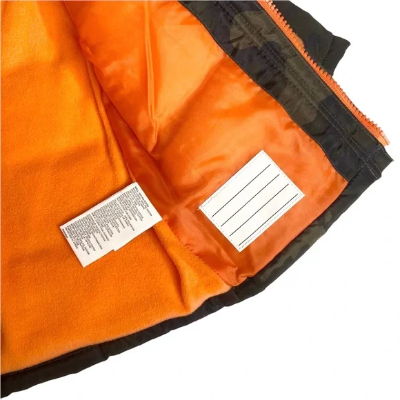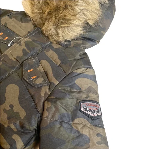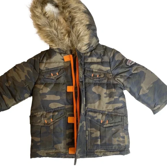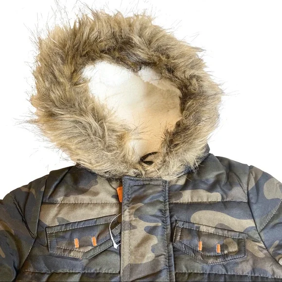 S RothschildCamo Print Puffer Hoodie Parka Jacketwith Faux Fur Trimin Army Camo GreenSize 3-6MSize 6-9MSize 12MMSRP $60Brand New with Tags𖠌Color pop details and cool camouflage print create a super fun hooded parka featuring snuggly faux fur and faux sherpa trim.HeavyweightFaux sherpa lined at hood; fleece lined at backFaux pockets at chest; functional pockets at front hipsZipper and stay-put closures at frontFaux-fur trim at sherpa hood; faux reflective taping. Fabrication: Polyester; faux fur: acrylic/polyesterMachine washable𖠌RainSnowWinterPufferSkiSnowboardMountainSki LiftLodgeBonfireCampfireFur LinedFaux FurReal FurGaiterOutdoorsOutdoorAdventureHikingSnowmobileCross CountryChaletCabin