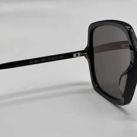 Condition: New with full packageBrand: SAINT LAURENT Model: SL591 001Frame Color: BlackLens Color: BlackFrame material: AcetateSize: 57-17-145Made in ItalyIncluded: authentic eyewear, certificate of authenticity, case, cleaning cloth.Next or the same business day shippingBRAND NEW WITH FULL PACKAGE AUTHENTIC EYEWEAR WITH CERTIFICATE