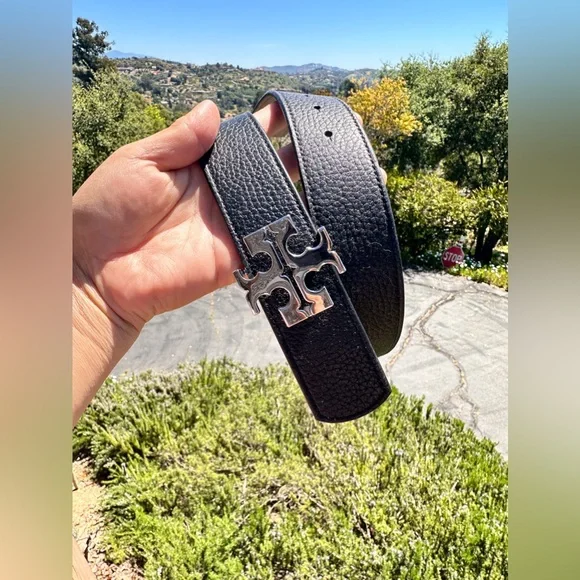 NEW Tory Burch Reversible Leather Logo Women's Belt 1.5" Black GreyNew never been used (can see the holes)Price tags been lostSome small Scratches from store when I bought it I’m no closer check NEW WITHOUT TAG TORY BURCH REVERSIBLE LEATHER LOGO 1.5" BELT100% Authentic Guarantee.Receipt available upon request.Color: Black/GreySize: XSmall (XS)Pebbled LeatherSilver Toned Double T Logo Buckle, Reversible Adjustable with 5 Holes (1" apart)Measures: 1.5" Width;XSmall: (From Pin to the first hole: 26"; to the last hole: 30"