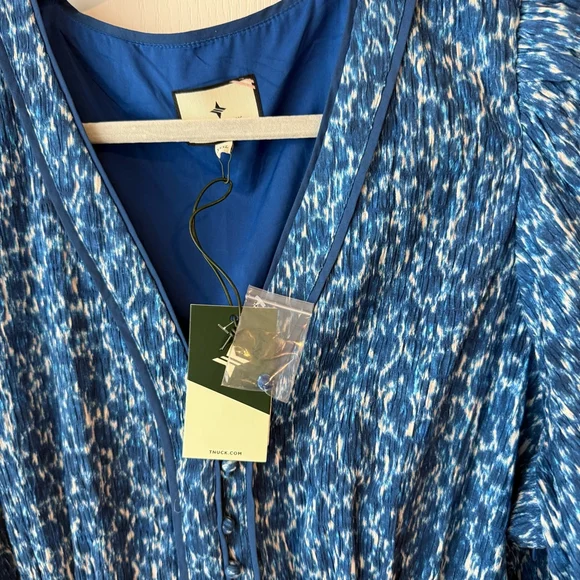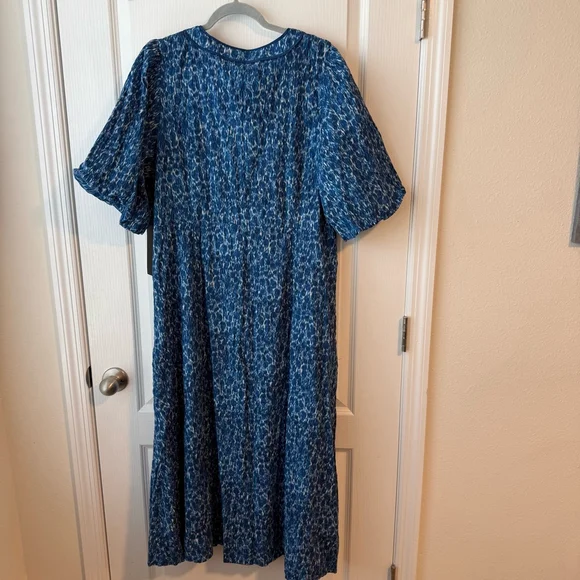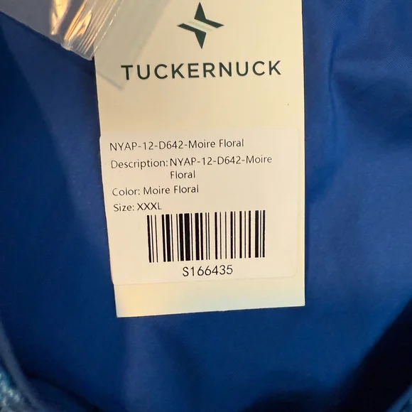 This is a new with tags Tuckernuck dress, model NYAP-12-D642-Moire Floral, size XXXL. The dress features a blue and white moire floral pattern. It has a V-neckline, short sleeves, and a button-down front. The outer material is 98% cotton and 2% spandex, while the lining is 97% polyester and 3% spandex. The dress is in excellent condition with no visible imperfections.Have a question, drop it in the comments. This item is NWT, please refer to manufactures website for measurements or fit, to ensure the most up to date information.
