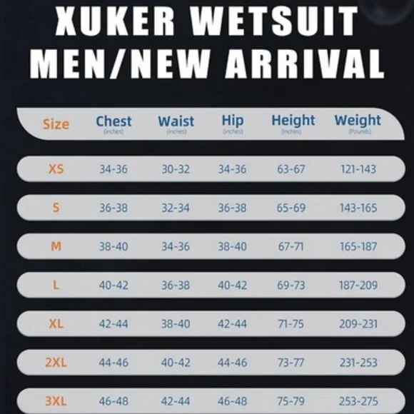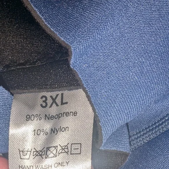 This has never been worn or used. Has no flaws. Clean. Smoke free home.Size 3XLSee 2nd picture, size chart for this item and size.You will get item shown in pictures.I ship out daily About this item90% neoprene, 10% nylonTrapping Warmth by Premium Neoprene: The main purpose of the wetsuit is to keep you warm in the water. Wetsuit works by trapping a thin layer of water between the neoprene and your skin so you are going to get wet(hence the name, wetsuit). The water between the skin and the wetsuit will form a thermal isolation layer, which will prevent the heat generated from your body spreading out, that keeps you warm.Protect the Skin from Damage and Sunlight: Wetsuit will provide a protective barrier from stinging sea creatures and help prevent cuts and stings due to accidental contact with underwater environments such as a reef. And it also protects your whole body against the sun if you wear a full wetsuit, except for your face, hands, and feet. Of course, our store also provide neoprene gloves, socks and diving hood.Easy to Wear: We choose to open the zipper in the back side, which is a traditional zipper-type that have vertical zip on the back of the suit which runs down the top down to the waist. The back zipper is normally opened wider than front one, thanks to that, donning on and off will be much easier. You can easily put on and take off the wetsuit without the help from others.Long Lasting Nylon Material