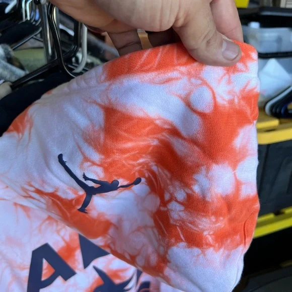 Experience the perfect blend of style and comfort with this Nike crewneck sweater, featuring a vibrant orange and white color scheme. The sweater's design showcases a unique tie-dye pattern, adding a touch of modern flair to your casual wardrobe. Ideal for any relaxed occasion, this sweater is a must-have for those who appreciate both fashion and functionality.