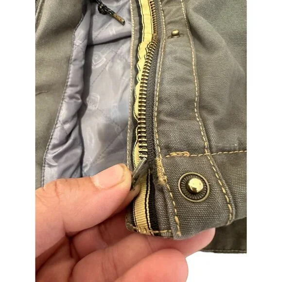 Noble Equestrian Coat Jacket Women Medium Green Canvas Riding Western RodeoDetailsNoble Equestrian brandCanvas coat jacketCanvas jacketRiding coatWomens equestrian jacketSize mediumGreen colorWesternRodeoCowgirlRanchWorkwearhard workLook at the measurements in the picturesConditionThe jacket has a flaw: the zip doesn't work, but it has snap buttons in really excellent shape. The rest is in excellent condition with no flaws. Look at all the pictures for details.