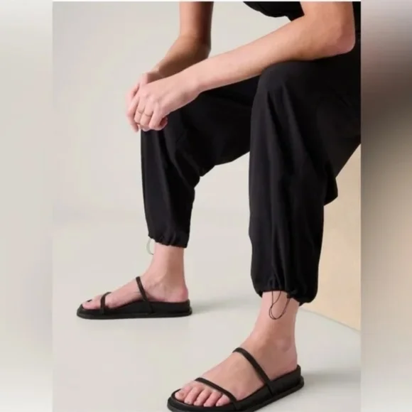 Athleta Brooklyn Utility JumpsuitFeatherweight Stretch is made with recycled polyester and feels light as airSide cargo pockets hold your essentials; front open pockets and 2 back zip pockets86% Recycled Polyester/14% Spandex RECYCLED MATERIAL: Made from recycled polyester, a material sourced from post-consumer plastic bottles that helps lessen our impact on the worldBREATHABLE: Airflow moves easily through the garmentWRINKLE-RESISTANT: Packable fabric that keeps clothes wrinkle free RATED UPF 40+ (Excellent Protection)ABRASION-RESISTANT: Resists snags and tearsMachine wash and drySemi-fitted, skims easily over the bodyWaistband 16" laying flat - will stretch with elastic band on sides and backUB