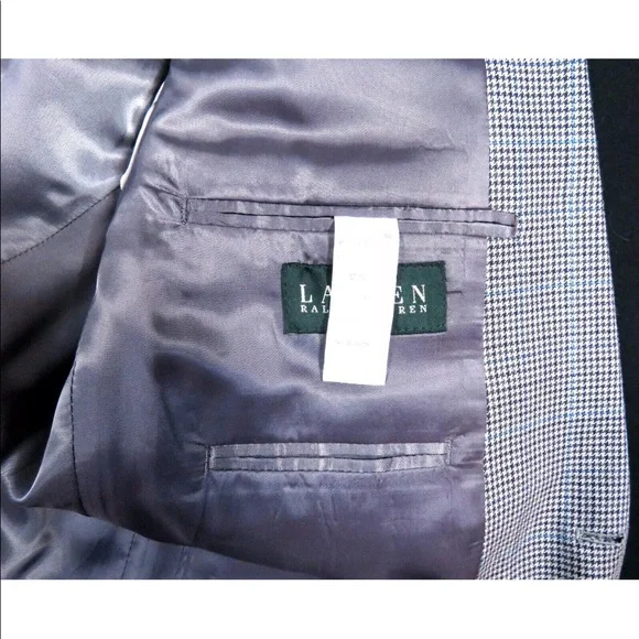 Description: NWOT Lauren Ralph Lauren Wool Silk 2 Button Houndstooth Blazer Sport Coat Jacket-Two button closure -Two front flap pockets-Left chest pocket-Single vented back-Four button cuffsSize (Check Measurements): Mens 42 LColor: Multi colorFabric: 52% silk and 48% woolCondition: New Without TagsItem#: 66129Measurements are in inchesArmpit to armpit: 22 1/2"Back bottom of the collar to the hem: 31 1/2"Shoulder to shoulder: 19 1/4"Shoulder seam to end of cuff: 25 1/4"BUYING VINTAGE·We do our best to thoroughly inspect all items for any visible imperfections i.e., rips, repairs, holes, stains, etc. and note as such.·Please note vintage sizes are not always comparable to today's sizing. Please refer to the measurements in the description for a more accurate depiction of the true size. If an issue should arrive, please contact us prior to leaving a negative as we strive for providing excellent customer service.Please compare your measurements to the measurements provided in the listing description to ensure a proper fit. 62637