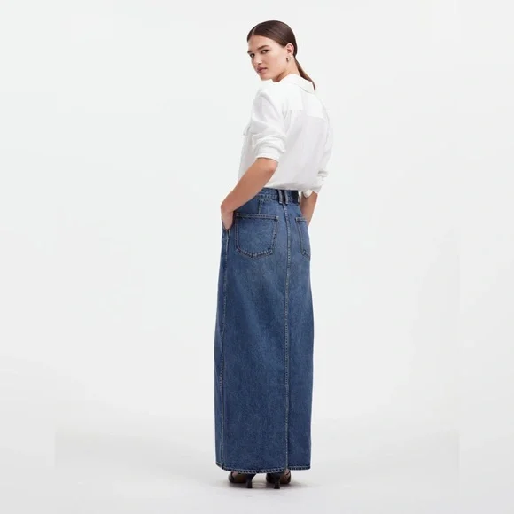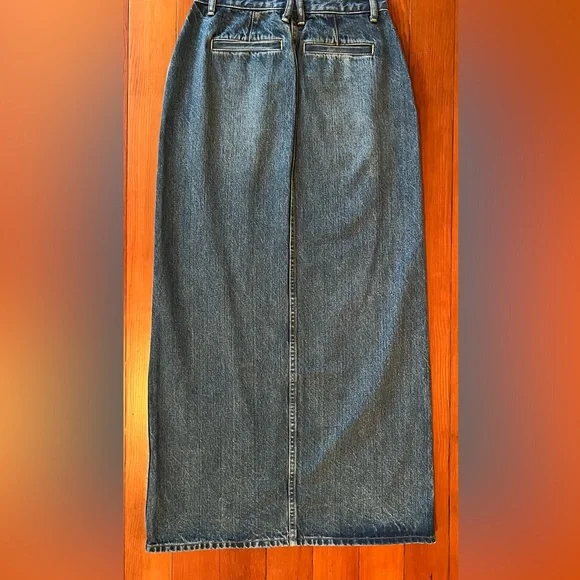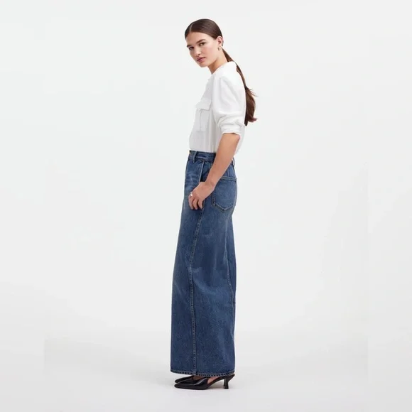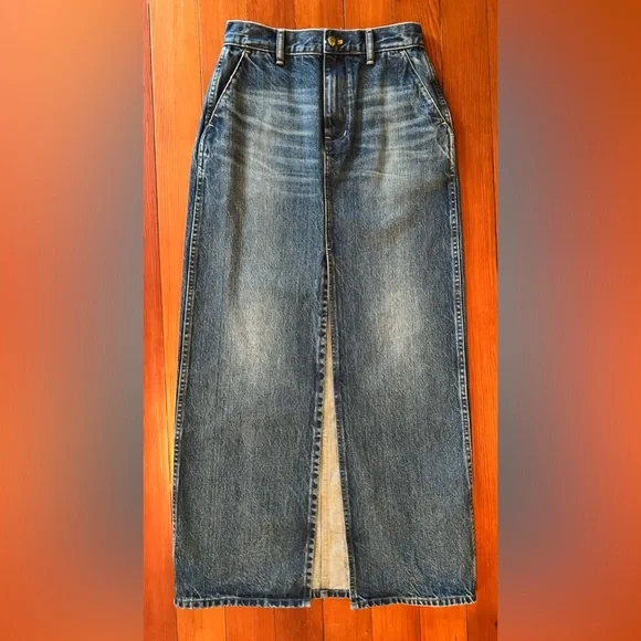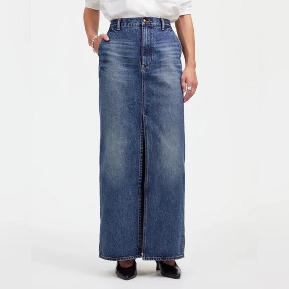 New without tags. Never worn. Perfect condition. Size 25 (marked as equivalent size 0, as size 25 is not a skirt size option on ). Fourteen years after we collaborated with her for the firsttime—Alexa Chung is back. Our Denim Maxi Skirt brings the feel of a storied vintage piece to your wardrobe—with lived-in detailing like whiskering and fading in all the right places. It also features a high-center slit and pockets (we love a skirt with pockets). This is a piece that feels like a well-loved favorite—and it will only get better with time.The fabric: old-school 100 percent cotton denim with zero stretch.37 3/4" long (based on size 28).100% cotton.Machine wash.Imported.Select stores.