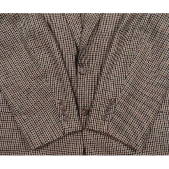 Description: NWOT Ralph Lauren Polo University Wool Silk 2 Button Blazer Sport Coat Jacket-Two button closure-Two front flap pockets-Left chest pocket-Single vented back-Four button cuffs-Notch collarSize (Check Measurements): Mens 43 TColor: Tan and multi colorFabric: 52% silk and 48% woolCondition: New Without TagsItem#: 66320Measurements are in inchesArmpit to armpit: 22 3/4"Back bottom of the collar to the hem: 32 1/4"Shoulder to shoulder: 19 1/2"Shoulder seam to end of cuff: 25 3/4"BUYING VINTAGE·We do our best to thoroughly inspect all items for any visible imperfections i.e., rips, repairs, holes, stains, etc. and note as such.·Please note vintage sizes are not always comparable to today's sizing. Please refer to the measurements in the description for a more accurate depiction of the true size. If an issue should arrive, please contact us prior to leaving a negative as we strive for providing excellent customer service.Please compare your measurements to the measurements provided in the listing description to ensure a proper fit. 63087