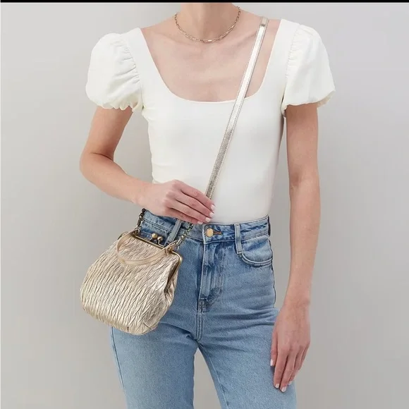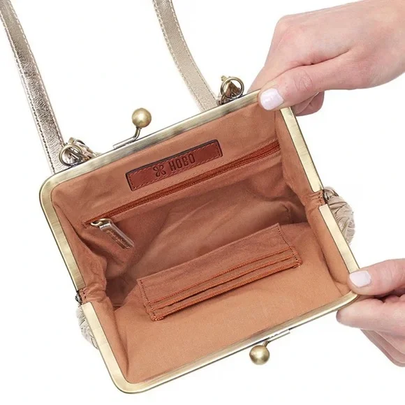 NWT AND DUST BAGHOBO GOLDAlba Stitched Leather Crossbody Bag with shoulder strap and handle 100% full grain leatherFully linedRemovable leather shoulder strapBrushed Antique Brass HardwareFrame clasp closureInterior back: Zip pocketDimensions approx. 8.5" W x 6.5" H x 3" D; Strap Drop 22.5"Keywords Only: Authentic Genuine Designer Luxury Limited Edition Collection Collector Rare Vintage VTG Monogram Brunch Picnic Champagne Happy Hour Date Night Versatile Baguette Gypsy Gypsies Witchy Nomad Fairy Whimsical Hippy Hippie Boho Bohemian Music Festival Concert Western Southern Southwest Rodeo Sexy Fun Flirty Funky Stunning Statement Gorgeous Beautiful Pretty Cute Adorable Classic Classy Chic Travel Vacation Cruise Yacht Resort Y2K Funky Retro Birthday Mother's Day Anniversary Xmas Christmas Gift On Trend Trendy Trending Carly Spring Summer Fall Autumn Winter Old Money