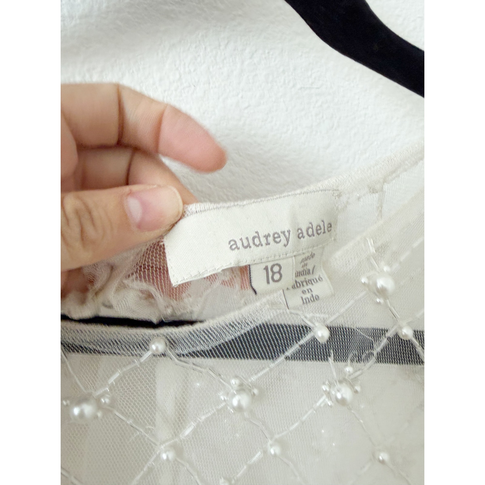 NWT Anthropologie Audrey Adele Pearl Overlay Sleeveless White Midi Dress US 18 Plus