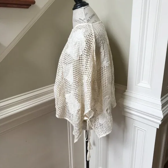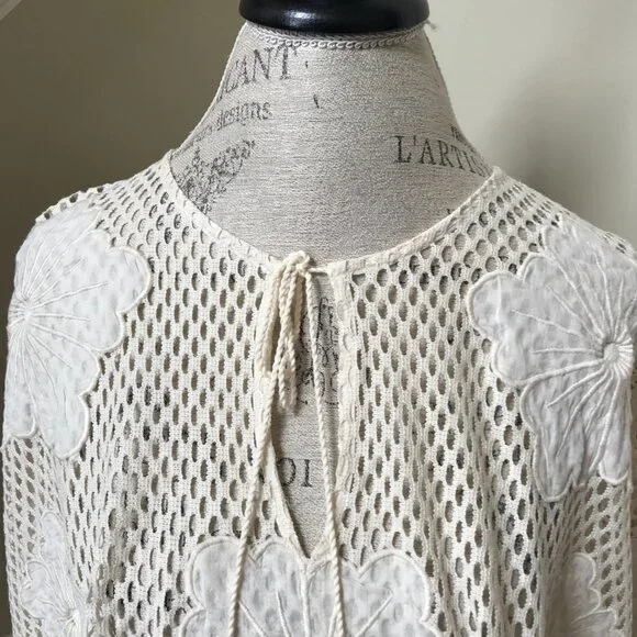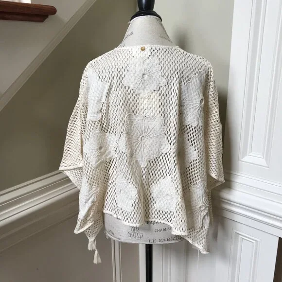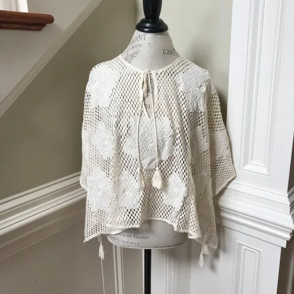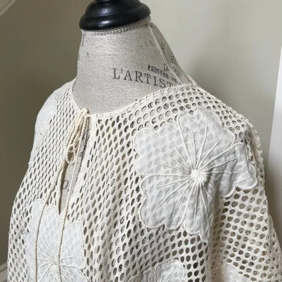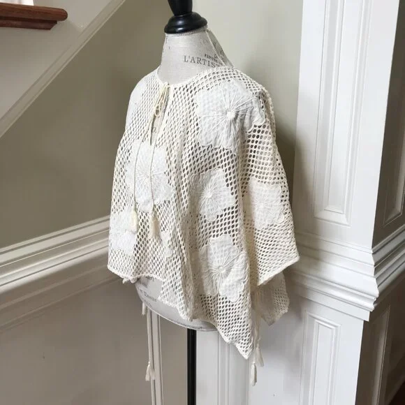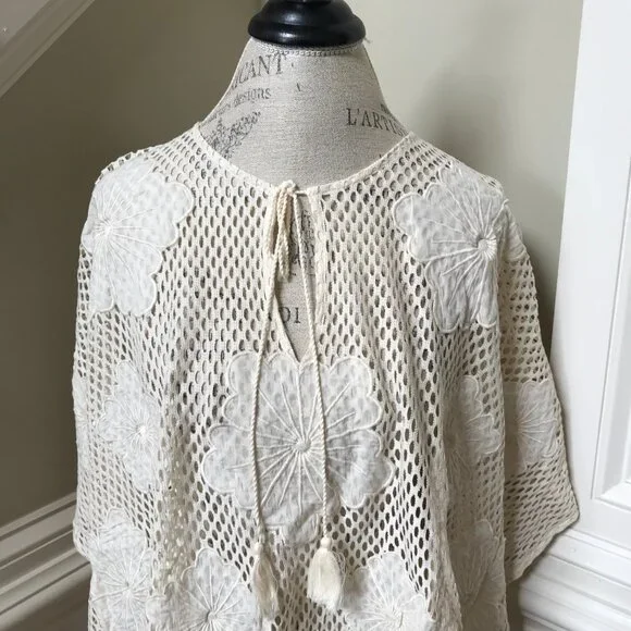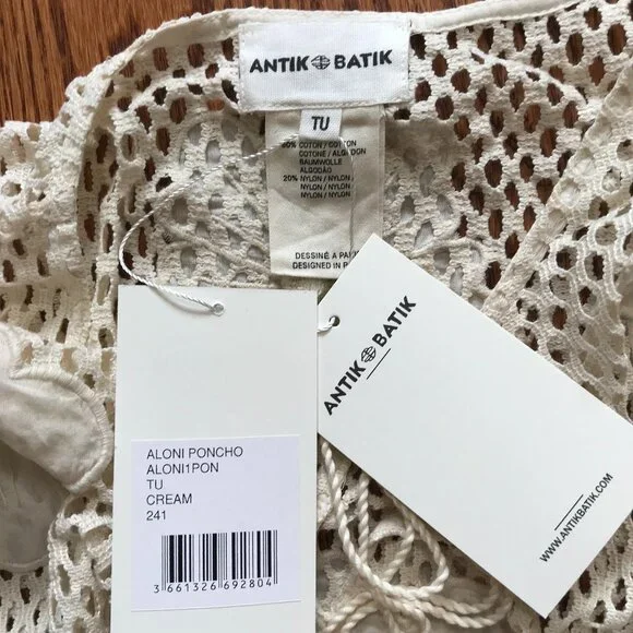 NWT Antik Batik Aloni Poncho Top Shirt Blouse Womens TU OS S M L Cream AppliqueBrand New with the TagsWomen's Aloni Poncho Blouse - Top / ShirtANTIK BATIKSize:TU / One Sizelength (center neck on back to bottom) - 20"Mesh ConstructionSide Tie DetailFloral AppliqueCotton BlendTasselsOpen KnitDesigned in FranceCurrent ModelTimeless & VersatileBrand new with the tags, Women's Antik Batik Aloni Mesh Poncho Blouse / Top in a size TU - One Size.Mesh cotton mini kaftan attached with side ties / tassels. Embroidered net with cotton embroidered floral appliqué. Originally $395. Fast Same Day Ship.ST