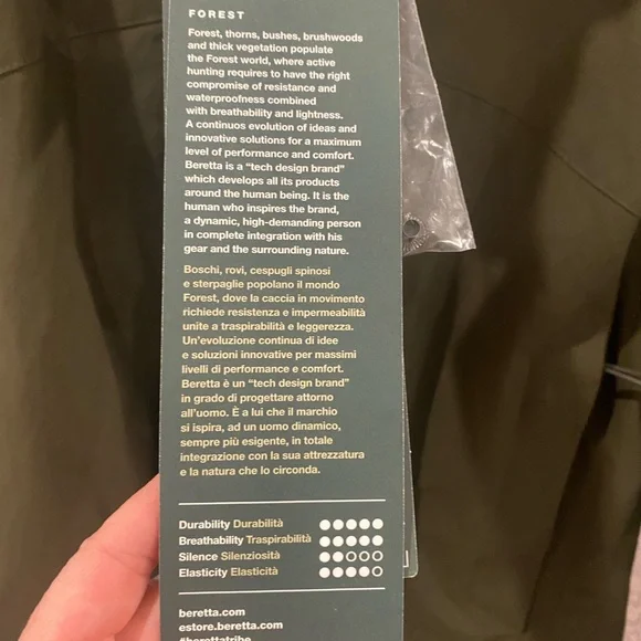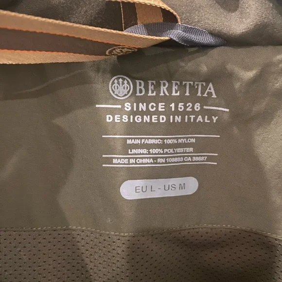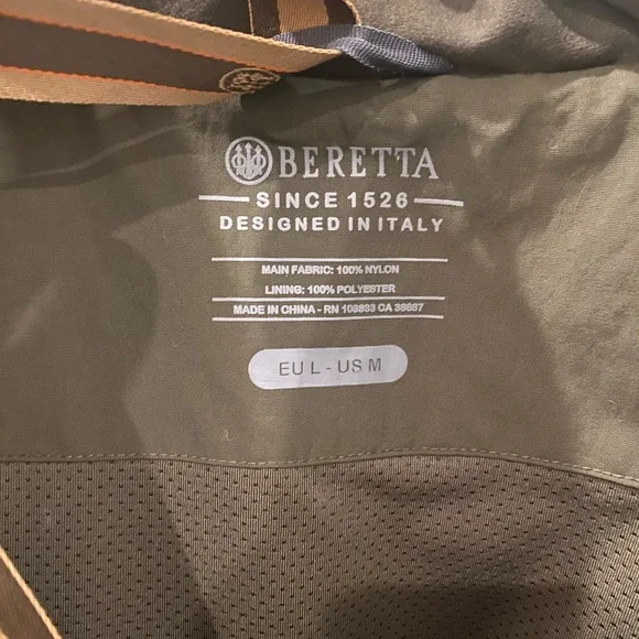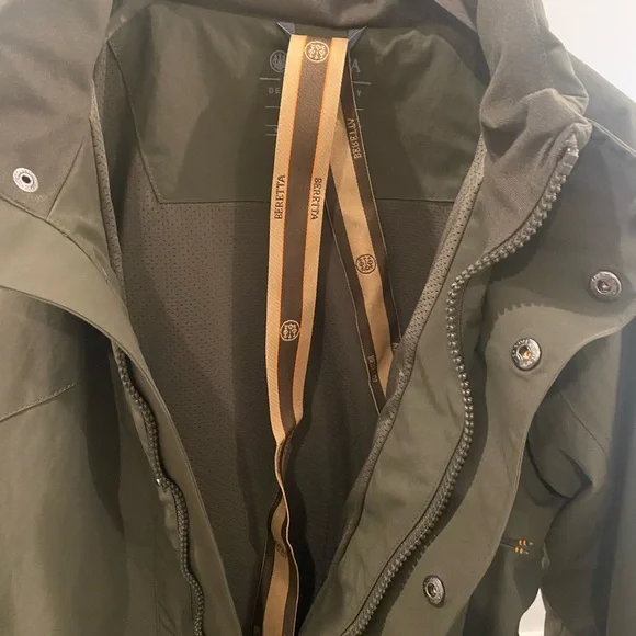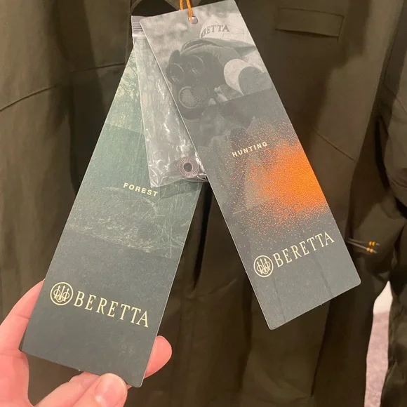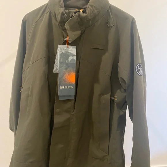 NWT BERETTA JACKETForest, thorns, bushes, brushwoods and thick vegetation populate the Forest world, where active hunting requires to have the right compromise of resistance and waterproofness combined with breathability and lightness.A continuos evolution of ideas and innovative solutions for a maximum level of performance and comfort.Beretta is a "tech design brand" which develops all its products around the human being. It is the human who inspires the brand, a dynamic, high-demanding person in complete integration with his gear and the surrounding nature.