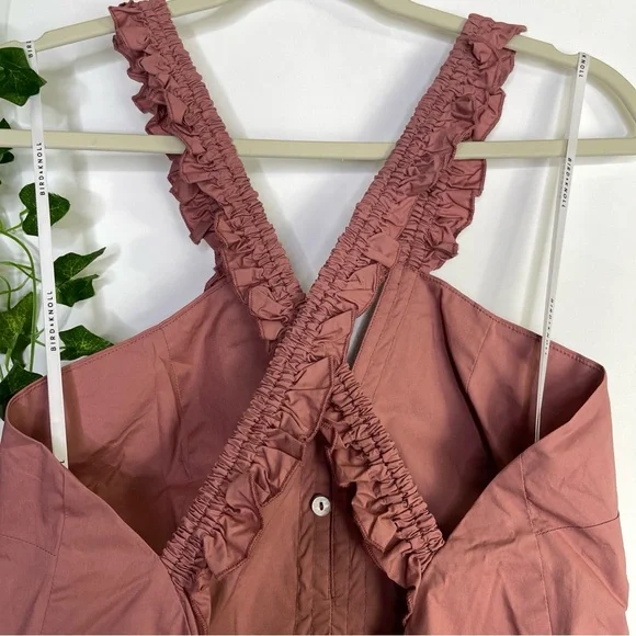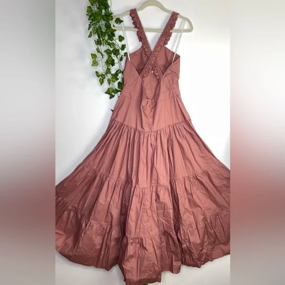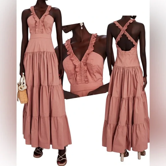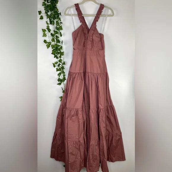 NWT Bird & Knoll ‘Stevie’ Tiered Ruffle Open-Back Strap Maxi Dress in Rose Sz XL