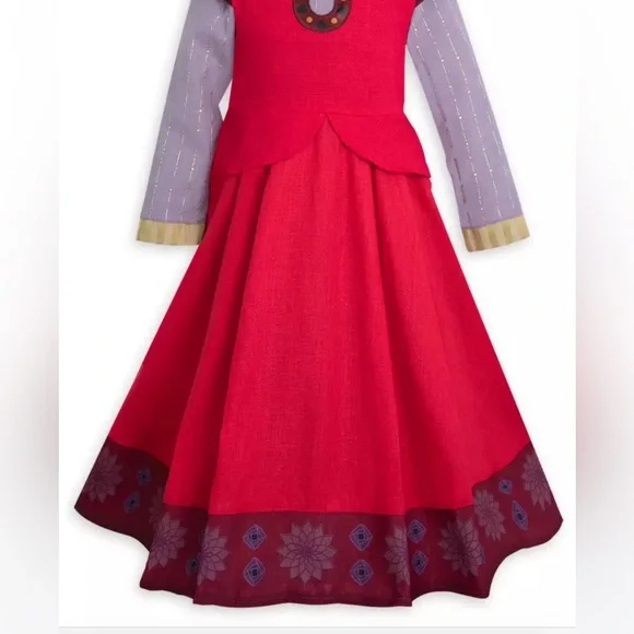 Beautiful detailed Disney store dahlia costume from the movie wish in size 13.Brand new with tags!! Gorgeous costume. Has many layers and details! Nice long length. Has a Velcro back and some stretch. Perfect for Disney trips, Halloween, dress up events, Disney fans and wish fans!!Could also fit a XS adult and maybe adult smallAuthentic and official Disney costume