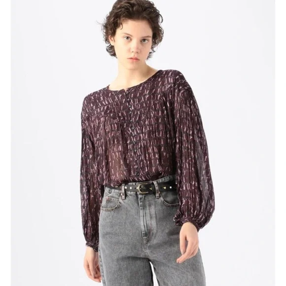 NWT Isabel Marant Etoile Sorionea Top in Faded Night - Size 34 (similar to US size 2)- Brand new, never worn with original tags attached - Color: Faded Night (beautiful hues of purple and violet)- Made in India- Buttons all the way down in front- Comes with rescue button- 100% viscose This is a very flowy and forgiving top. Super comfortable and would be so cute with high waisted jeans, white sneakers and a leather jacket! NOTE: This listing is for the top ONLY. Will NOT include skirt.Retails $436. Sold out everywhere. Only selling because the sleeves are a bit short on me (I’m typically a size 6). Feel free to ask me questions! Reasonable offers will be considered. No lowballing please.7