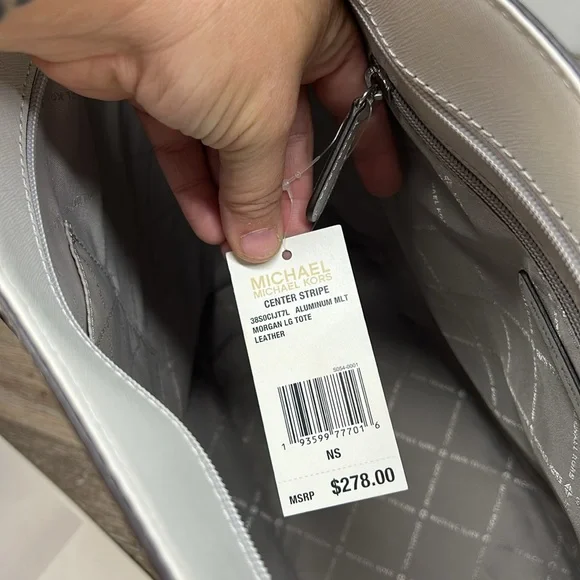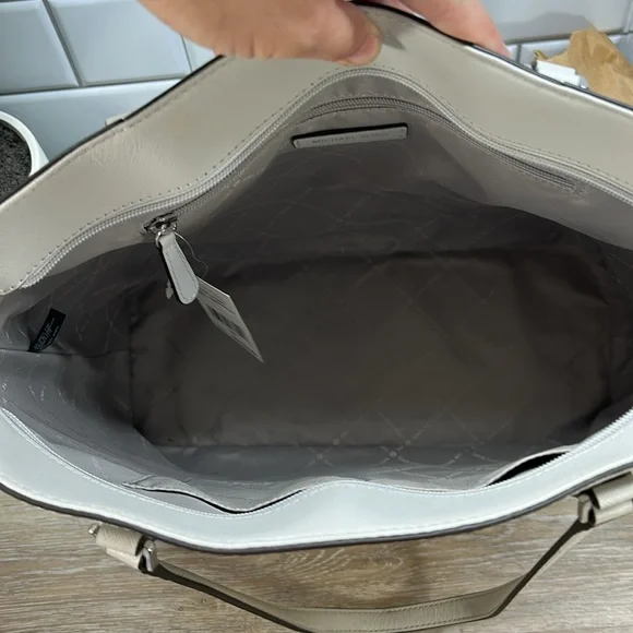 NWT Michael Kors center stripe Morgan gray zip top tote