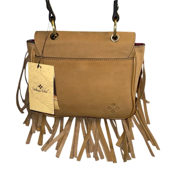 Patricia NashA petite saddle bag with a big personality, the Karisa will grab attention wherever you go. In soft Nubuck leather for fall with a swingy fringe that gives it a fresh boho charm, the Karisa has a roomy interior plus a bonus pocket with three credit card slots for added convenience.100% full-grain leatherInterior: 1 zip pocket, 2 slip pockets; Montana Prairie Skies lining, 100% polyesterExterior: 1 rear slip pocket with magnetic snap closure, 1 front slip pocket with magnetic snap closure and three credit card slots, burned edge finishMagnetic snap closureSignature brushed brass hardware, heavy handcrafted stitchingFringe Length: 8"Width: 9"Height: 7"Length: 30" adjustable strapsFaux suede small storage scuffsNothing noticeable except very close inspection