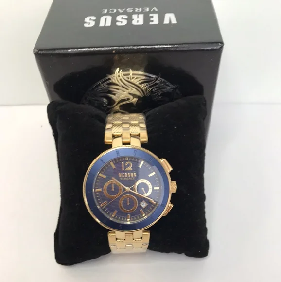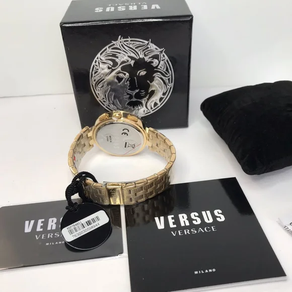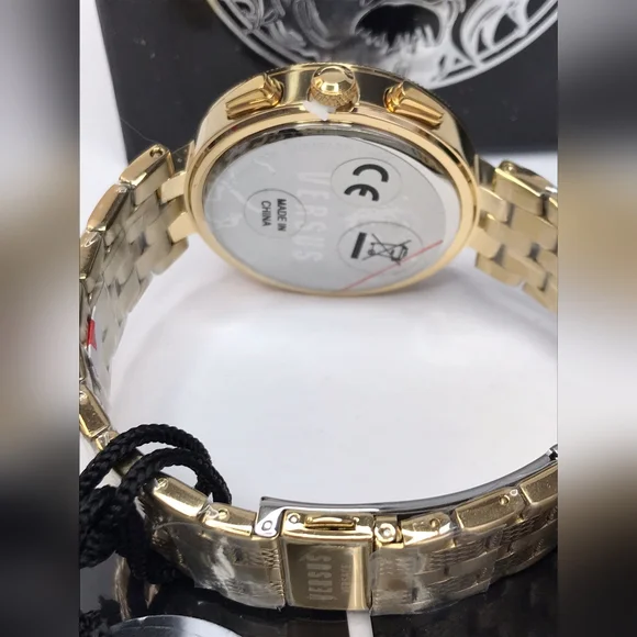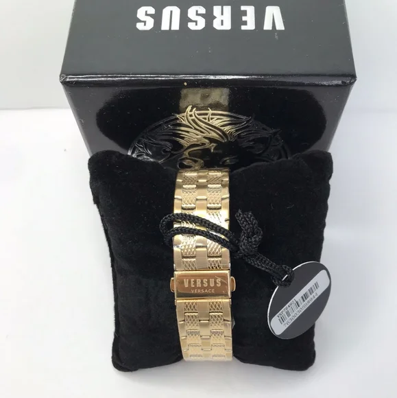 New VERSUS VERSACELogo Gent Chrono Men's WatchVSP764921Movement: QuartzCase Width: 44 mmWater Resistance: 50 m (165 feet)Features: Chronograph, DateVersus Versace, Logo Gent Chrono, Men's Watch, Stainless Steel Case, Stainless Steel Bracelet, Quartz, VSP764921FEATURESChronograph DatePRODUCT DETAILSSKU:VSP764921Brand Name:Versus VersaceCollection:Logo Gent ChronoBANDBand Color:Gold ToneBand Material:Stainless SteelBand Type:BraceletBand Length:8.5 inchesBand Width:22 mmClasp:Deployment ClaspCASECase Width:44 mmCase Depth:10.8 mmCrystal:Mineral CrystalMaterial:Stainless SteelShape:RoundWater Resistance:50 m (165 feet)MOVEMENTCountry Of Origin:Made in JapanType:Quartz