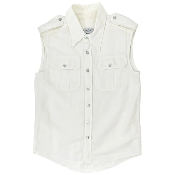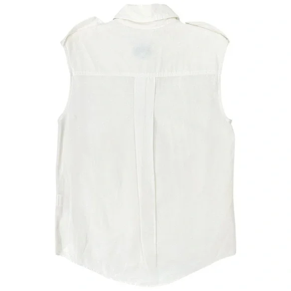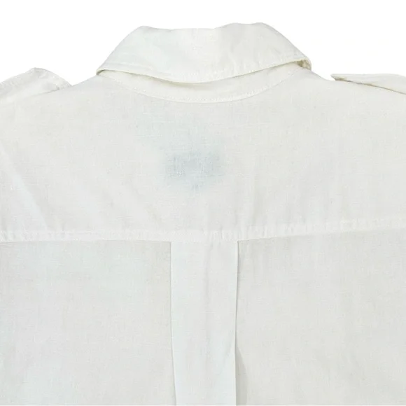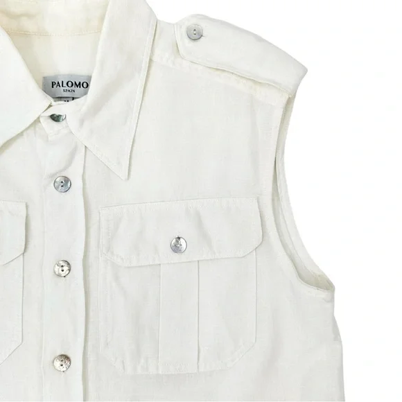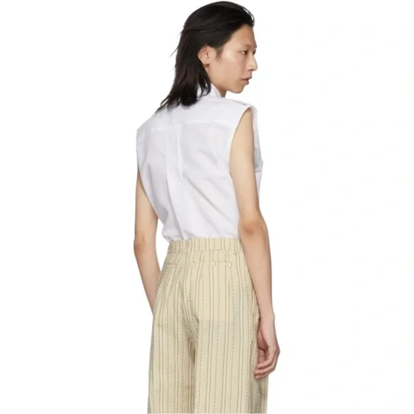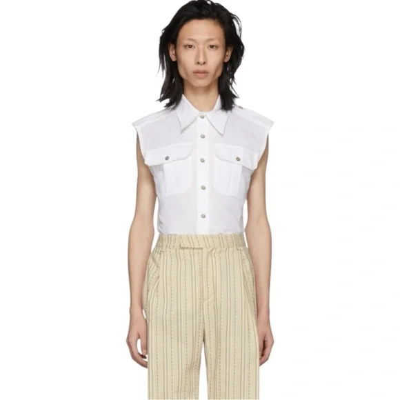 Marked size Medium.Original retail price $475. Sold out everywhere.Details from SSENSE:Sleeveless linen and cotton-blend shirt in white. · Spread collar. · Button closure at front. · Flap pockets at chest. · Epaulets. · Box pleat at back. · Tonal stitching.56% linen, 44% cotton. Made in Spain.Fit pics from SSENSE.📏 APPROXIMATE FLAT-LAY MEASUREMENTS >Pit to pit: 19"Back Length: 27.25"🔎 CONDITION REPORT > Excellent—no holes, no stains, no odors, or other significant or noticeable flaws. Please add a comment if you need more info/closeups/measurements or if you have any questions—we respond to most requests within a few hours :)