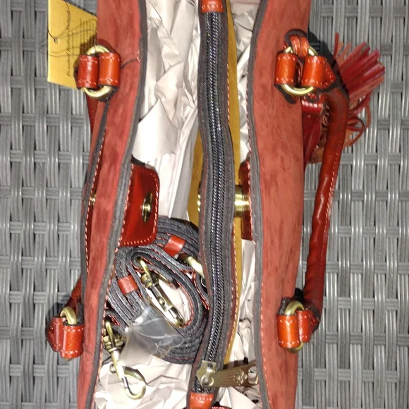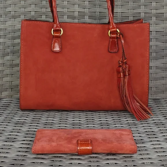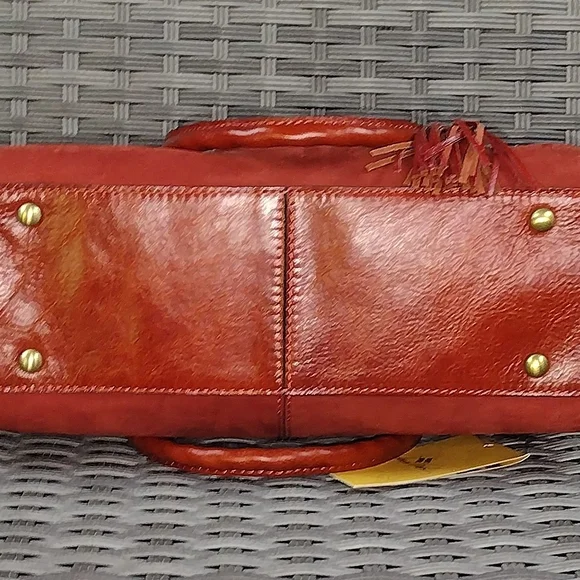 The Patricia Nash Red Leather Tote is a sophisticated accessory crafted from high-quality leather, featuring a structured rectangular shape and double top handles. Its minimalist design and silver-tone hardware add a touch of elegance, making it perfect for everyday use while maintaining a professional appearance.