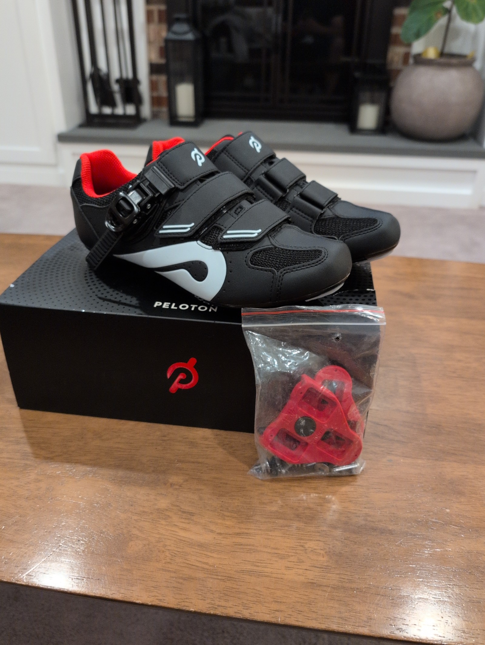 Experience peak performance with this perfect, like-new pair of Peloton cycling shoes (actual photos provided). These shoes are in pristine condition, showing no signs of wear, and come in their original box. Pre-installed Look Delta cleats are included, ensuring immediate and seamless compatibility with your Peloton bike.