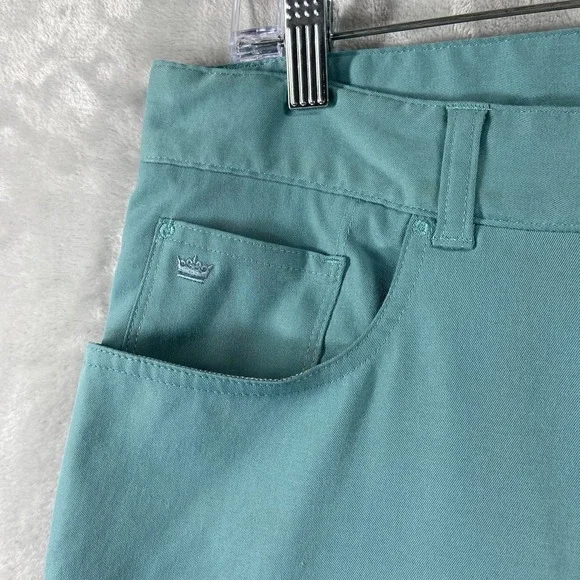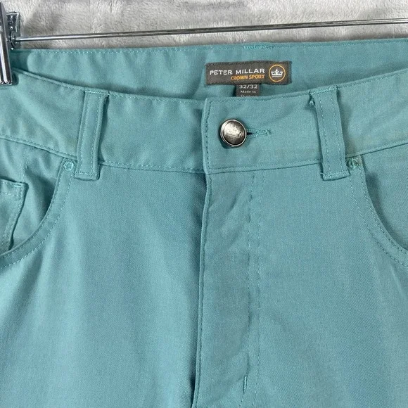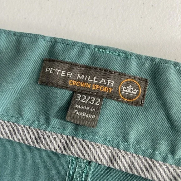 Peter Millar men's (Size 32x31) EB66 Crown Sport Chino pants * Brand: Peter Millar * Size: 32x31 (men's) - The tag reads "32x32" but these pants have a 31" inseam measured* * 100% Polyester * Condition is "Pre-Owned", in Great Condition * (there's a few tiny marks on the back of the waistband, hardly noticeable, shown in pictures - I have not tried to remove any staining; there's a few tiny loose threads as well on the back pockets, as well as a small scuff on the back left pocket) * Shipped with USPS