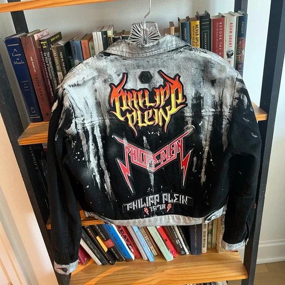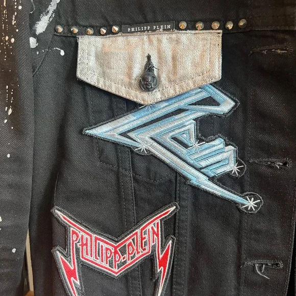 This is Authentic Philipp Plein Denim Rock Jacket, size SAll the patches and rock studs are intact. There is minimal wear on a collar and inside cuffs, please refer to the pictures.A slight wear on the inside label, see picture as well. Very rare, sold out everywhere. Collectors item.Open to offers!