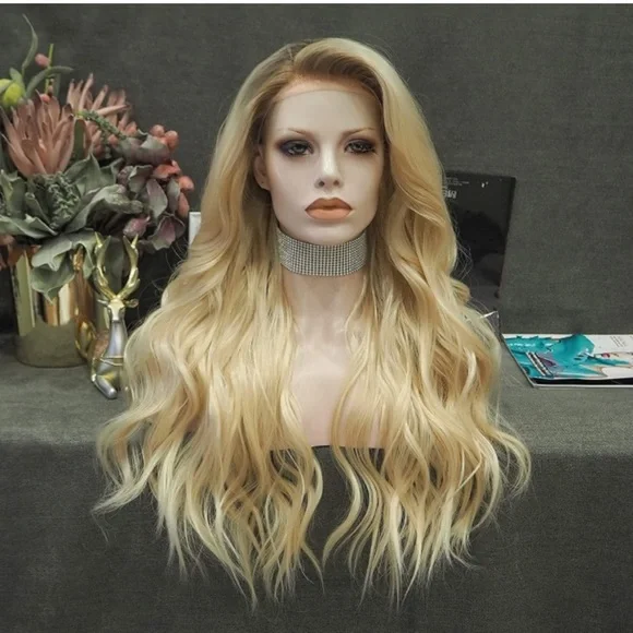 👉Natural Long Wavy Hair Wigs for Women 👉Dark Root Blonde Hair Replacement Heat Resistant Realistic Wig👉Length: 24 Inch👉 Color: Ombre Platinum Blonde Hair, Light Brown Root👉 Density: 150% -180%👉can be heated, temperature up to 320℉, 👉 Average breathable cap size 22.75 Inches 👉2 adjustment straps inside the wig and 3 hair collection combs👉can be adjusted to 21~23"