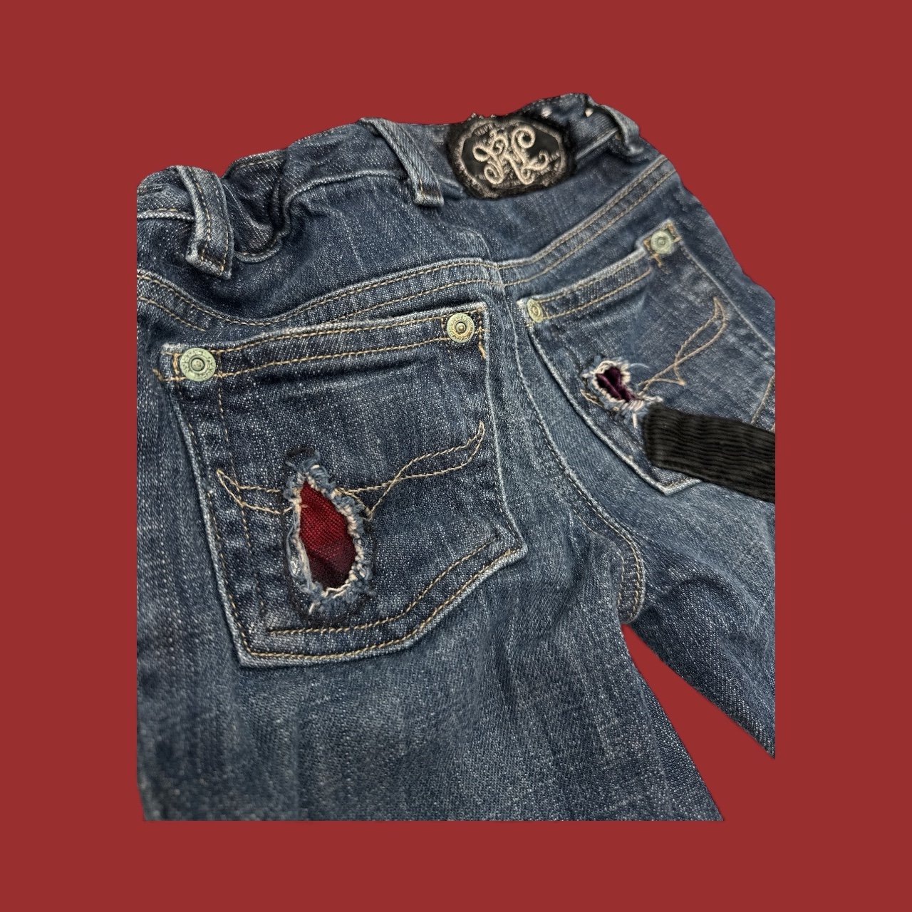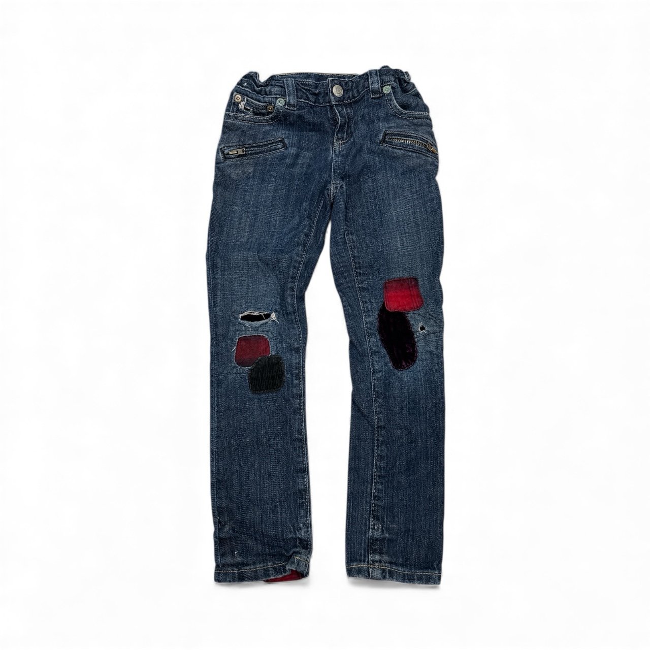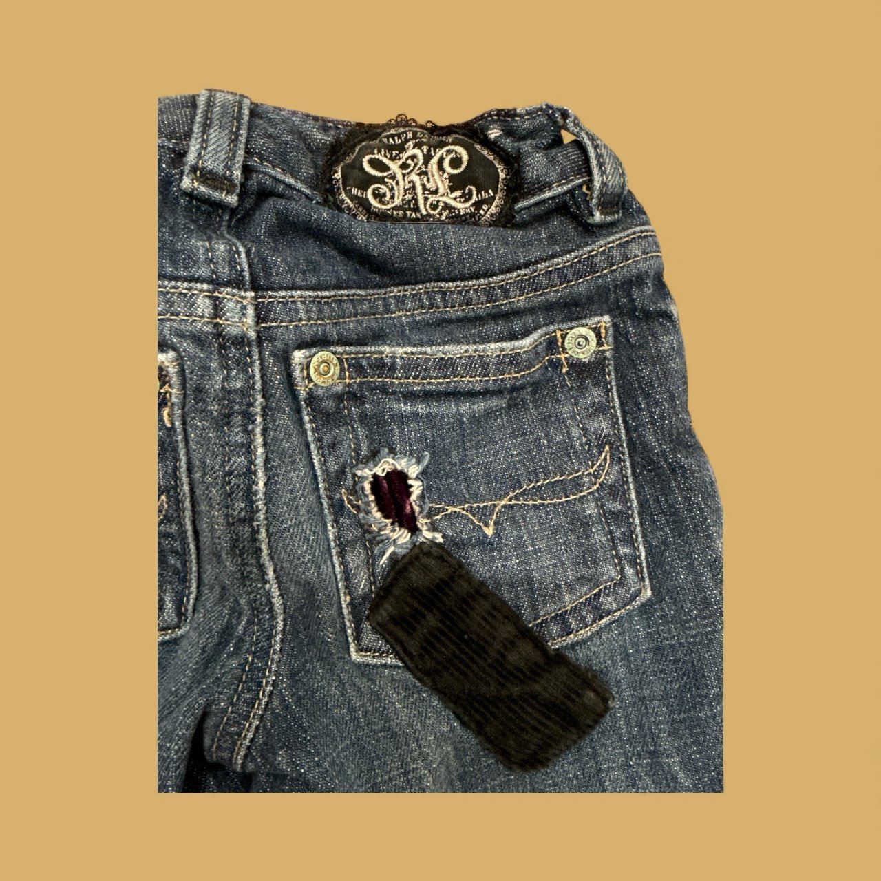 Stylish and comfy designer jeans by Polo Ralph Lauren for kids. These jeans feature a trendy distressed look with colorful patchwork details for a cool, casual vibe. Made from premium quality denim, they offer durability and comfort for everyday wear. Adjustable waistband ensures a perfect fit as your child grows.